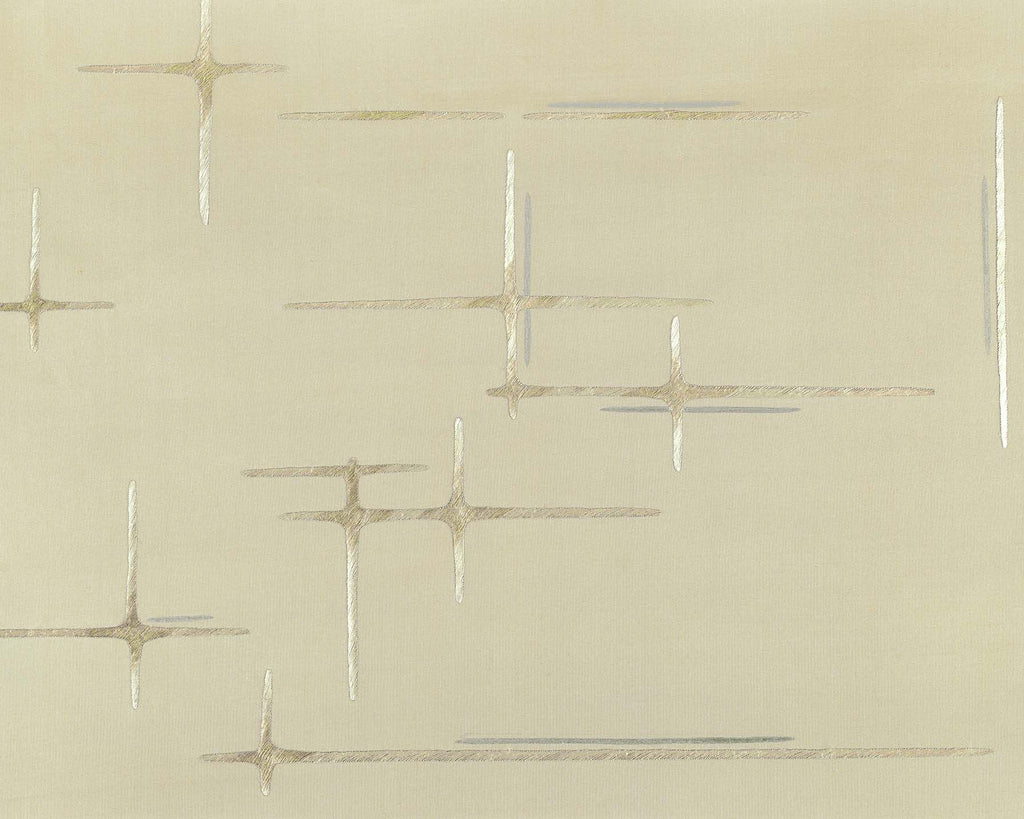 A marriage of mathematical precision and craftsmanship, where hand-painted and embroidered asymmetrical crosses set the rhythm.