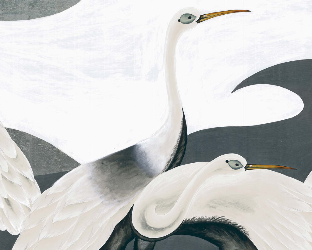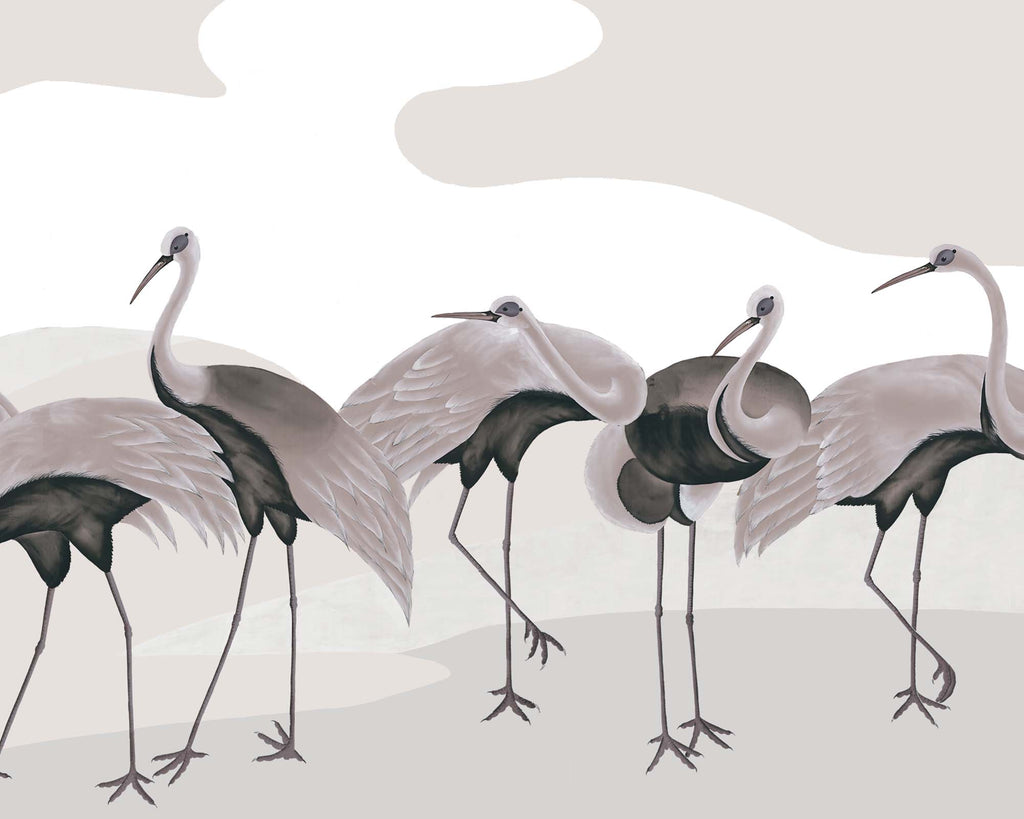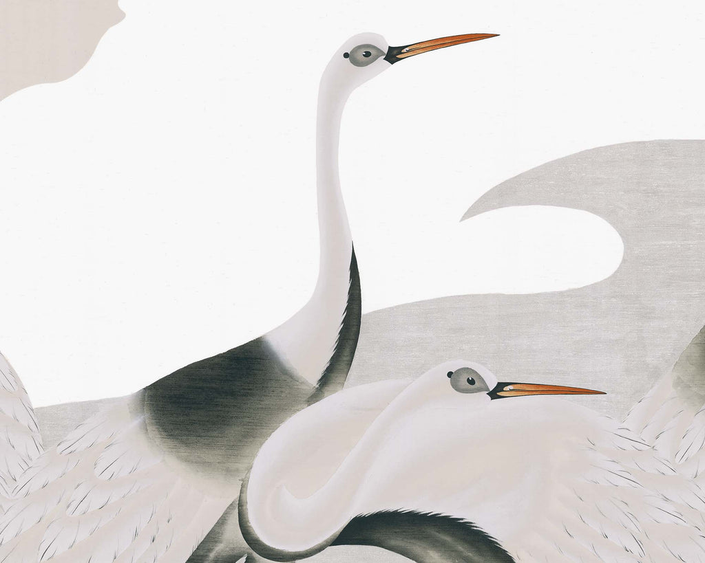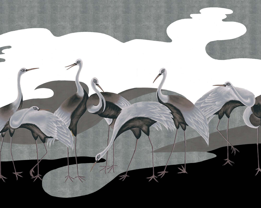 A modern take on the Rinpa School style, Flock is a majestic scene of cranes-symbolising good fortune and eternal youth.