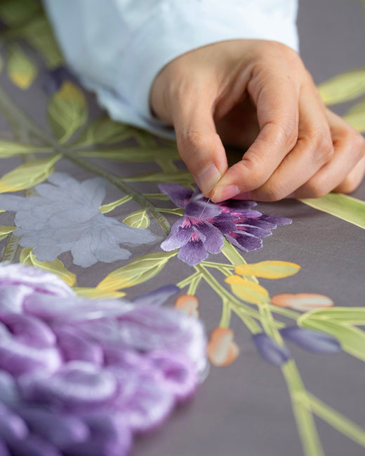 For panoramic wallcoverings such as Chinoiserie, we can adjust design placement to ensure birds sweep gracefully over doorways, trees extend their branches in perfect harmony with an archway, and the finest embroidery sits at eye level. This is a process of precision and artistry, tailored to your needs.