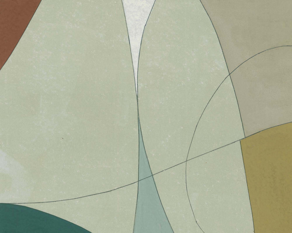 Inspired by Ben Nicholson, this modernist composition layers still-life forms in a rhythmic interplay of line and movement.