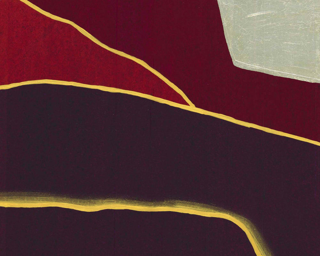 Inspired by the artistry of traditional bookbinding, this waxed and gilded collage of torn paper captures the rich texture of burnished leather.
