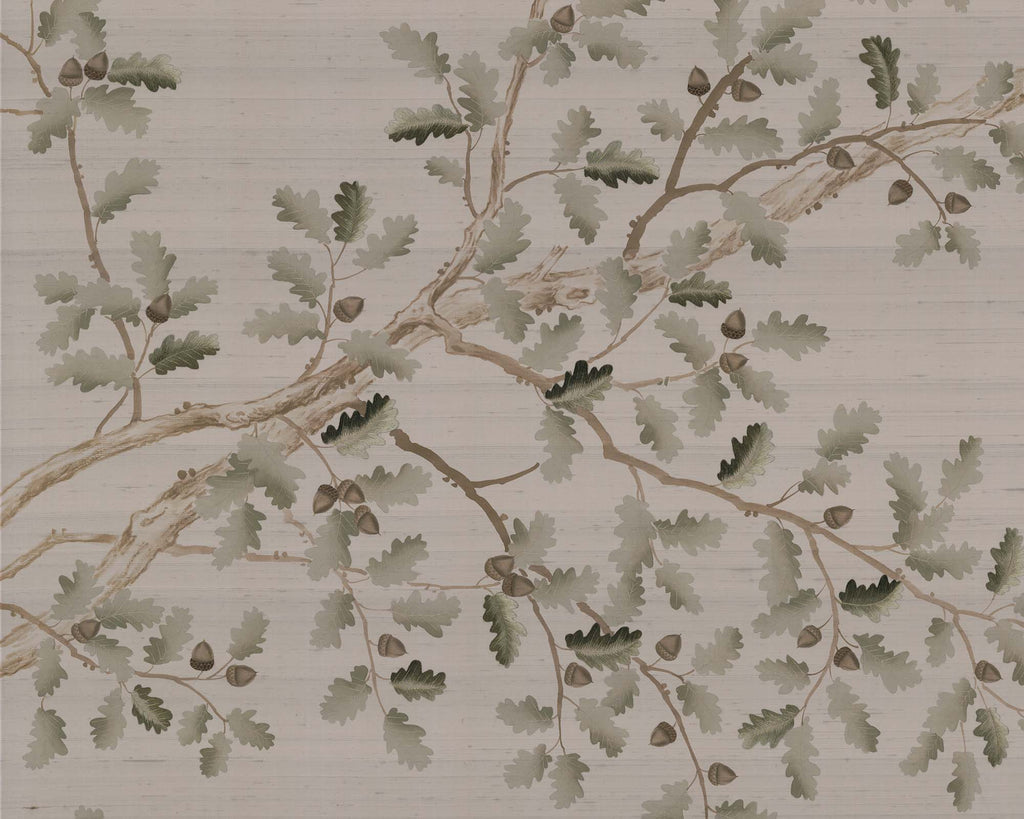 Branches dance elegantly across a silk canvas, the sense of movement emphasised by hand-embroidered leaves and acorns.