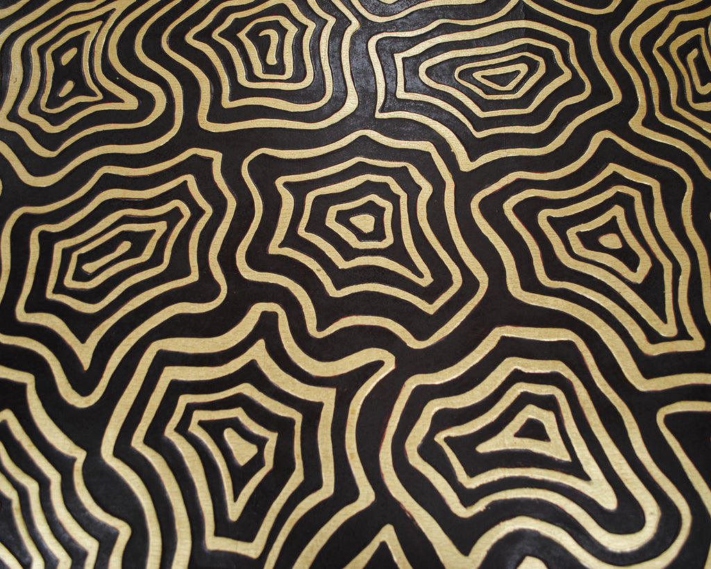 Castano is a high contrast colourway has a deep umber painted background adorned hand gilded, relief shapes.