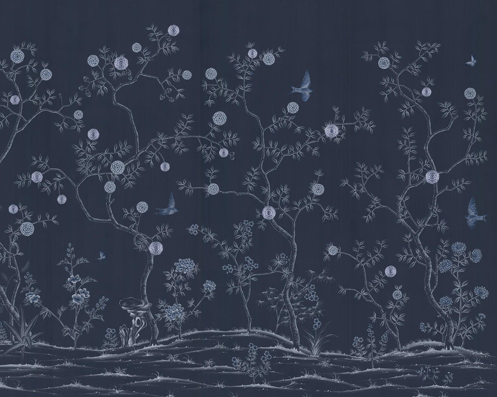 One of our most exquisite silk chinoiseries, where hand-painted and embroidered details intertwine with Lalique crystal.