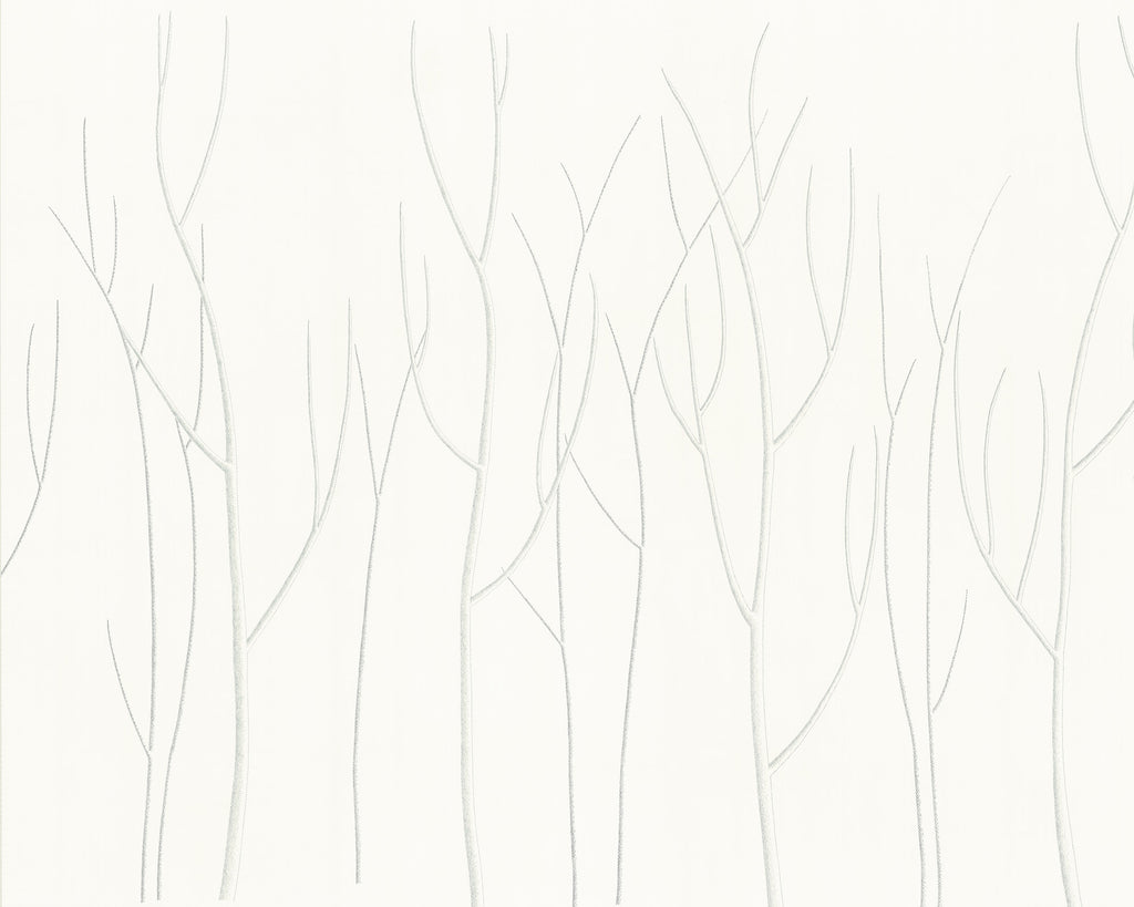 White silk creates a luminous, ethereal ground. Stitching traces delicate bare branches in subtle silvers and greys, barely lifting from the surface. Understated and quietly breathtaking.