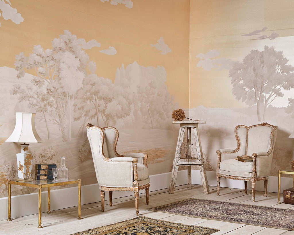 A thoroughly English landscape painted in the style of a 19th-century panoramic block-print.