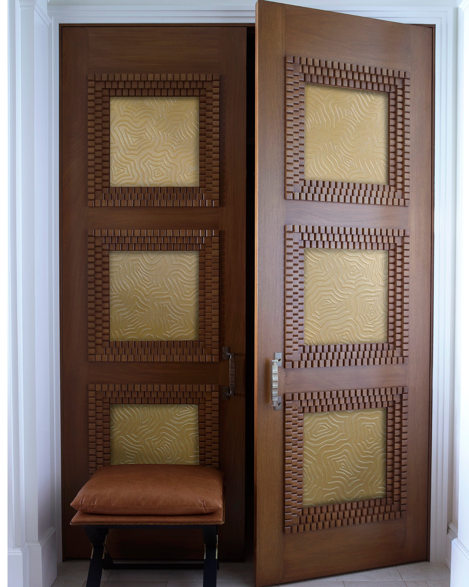 Oro is a rich, bronze colourway comprised of multiple layers and finishes. The relief design is gilded with gold leaf, antiqued with oil and finished with a glaze.