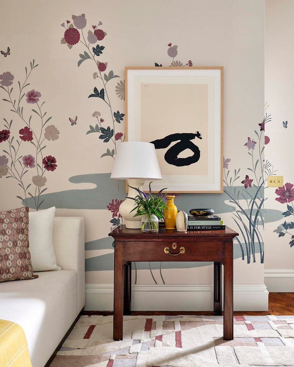 Edo Springs is a modern rendition of a classic Japanese screen with trailing flowers climbing the walls. A painterly mix of delightful shades, this elegantly stylised floral pattern is both balanced and bold. It is available in a variety of colourways to provide a touch of femininity or introduce theatre to an interior.