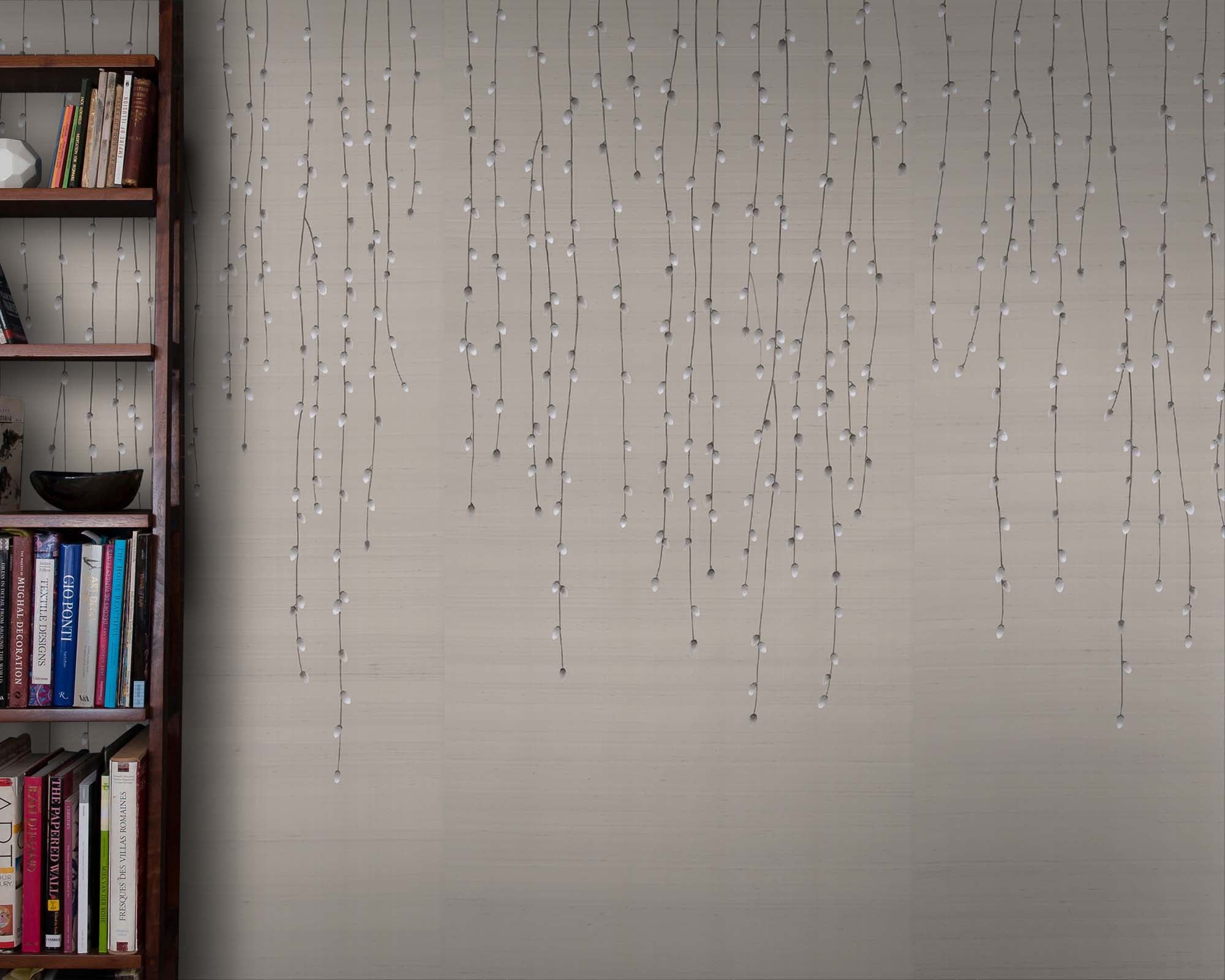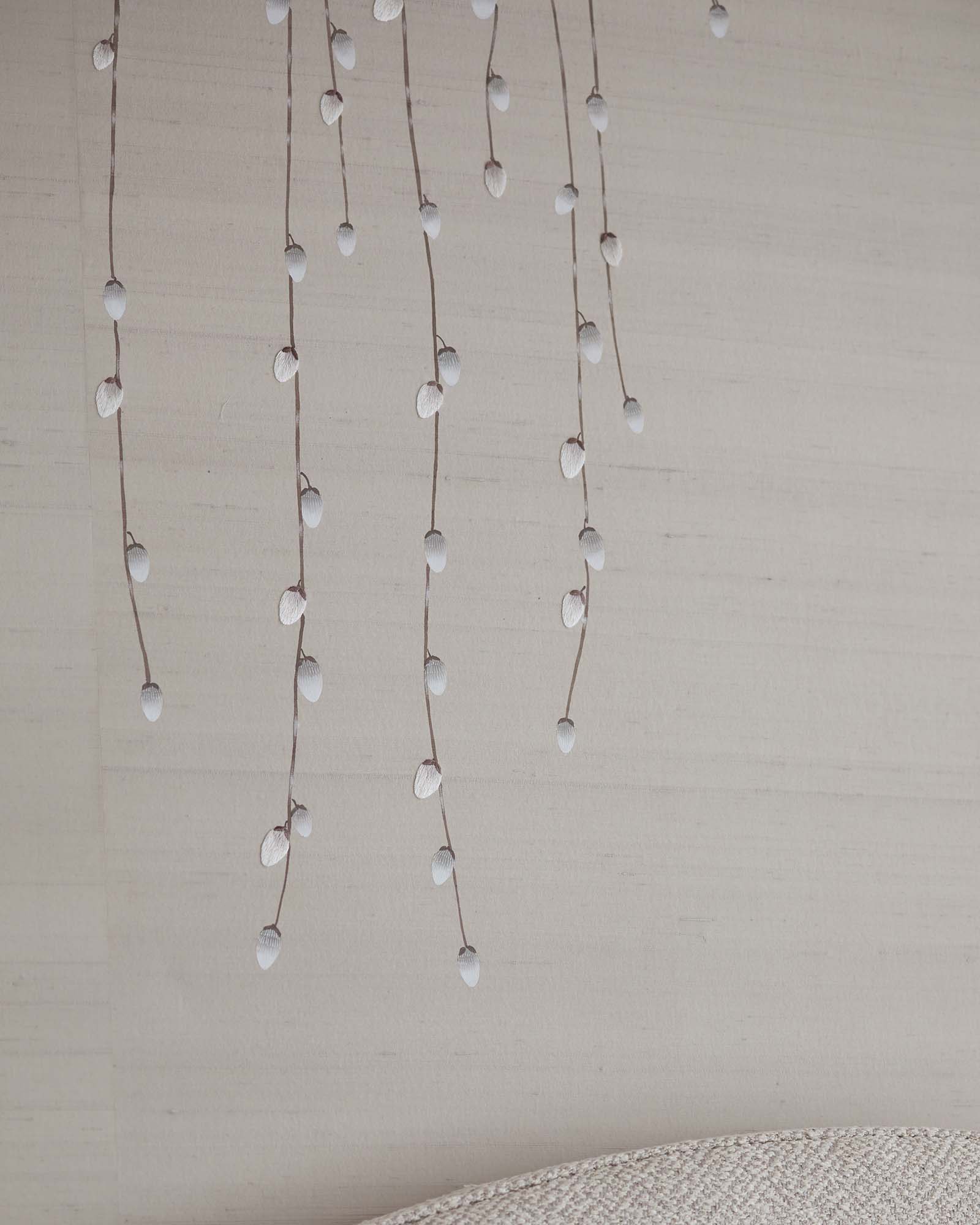 Departing from previous designs from our Sophie Paterson collection, Grey Willow is more linear and graphic, making it easy to compose seamlessly in any room. The subtle pops of colour mimic natural catkin hues, creating a delicate interplay that maintains a connection to organic inspiration. Beyond mere aesthetics, Grey Willow invites a sensorial journey, with hand-embroidered details and metallic painted elements showcasing the dedication to craftsmanship. This wallpaper transcends design, narrating a story of nature's beauty through the lens of meticulous.