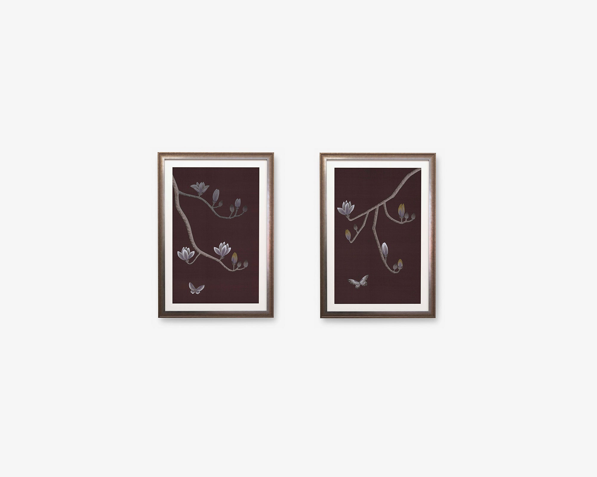 In Chinese culture, the magnolia tree is a recognised symbol of purity and nobility. This refined, modern chinoiserie design is entirely hand-painted, its well-defined branches balanced by the femininity of the magnolia flowers and butterflies.