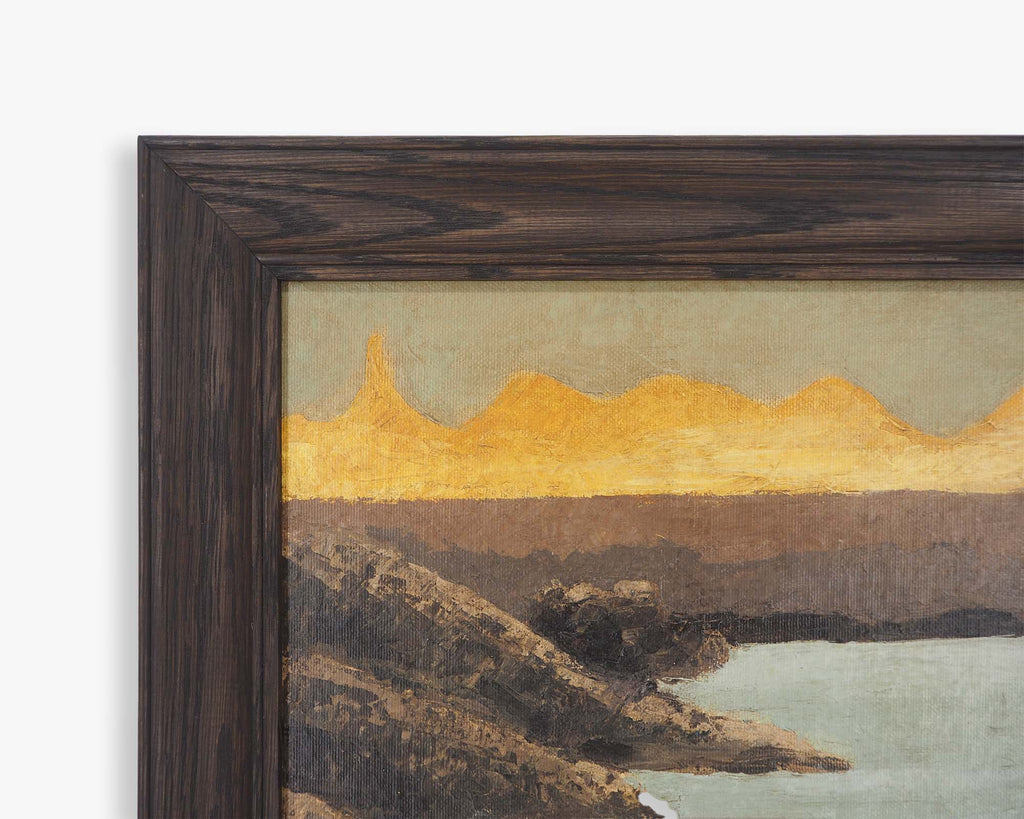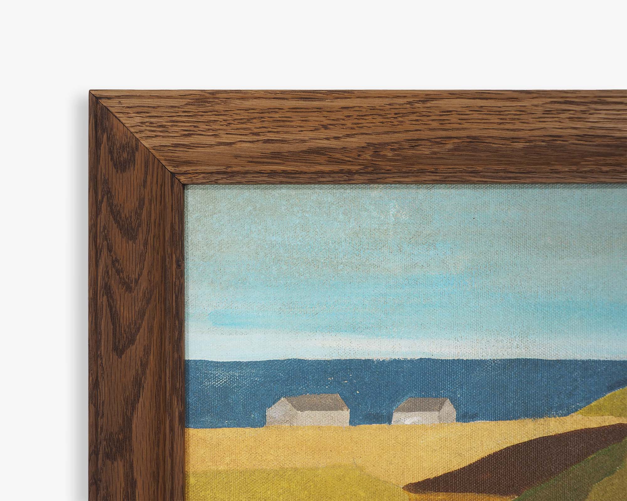Mixed media on canvas. Framed in fumed, oiled and waxed oak.