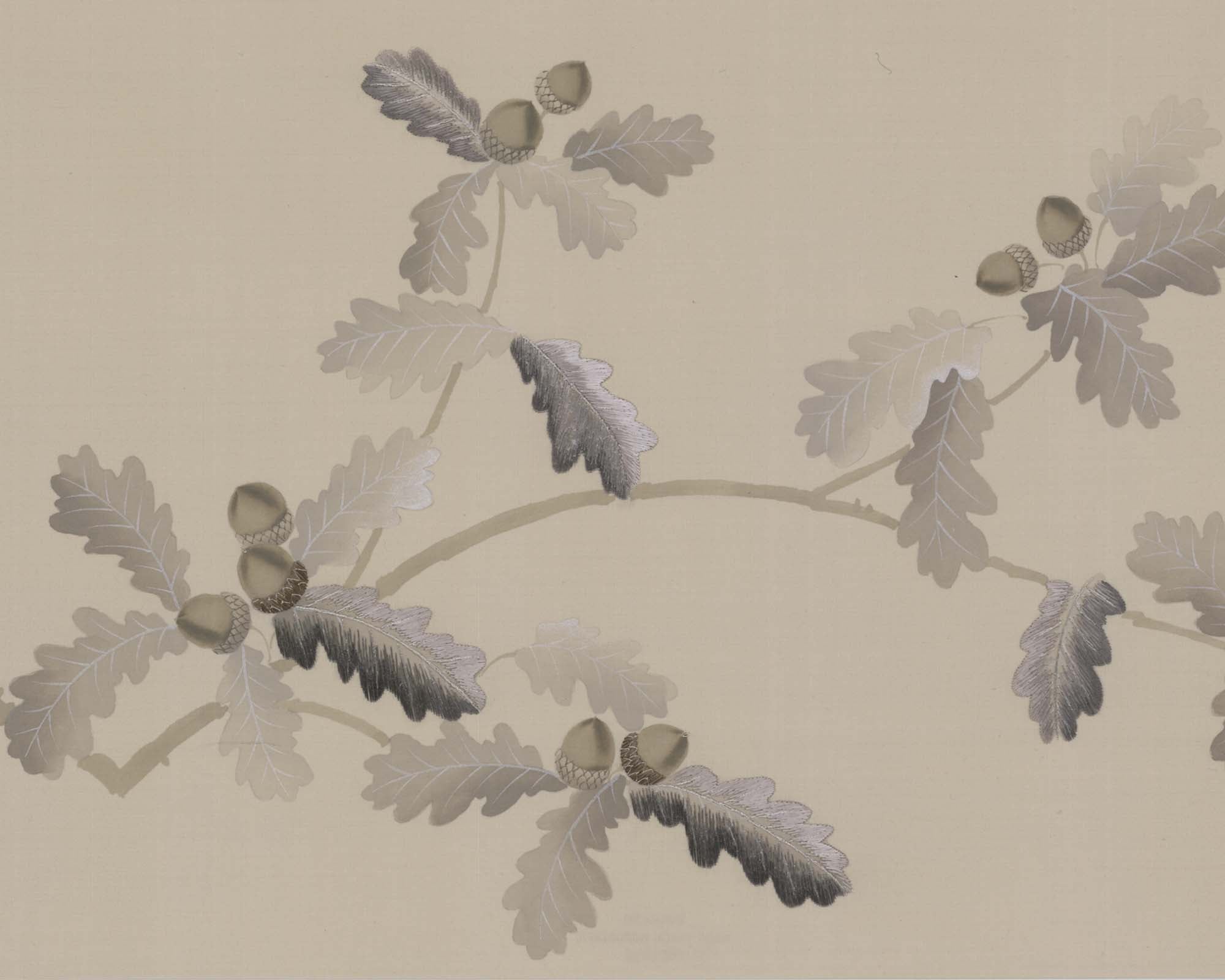 Oak Leaf is the latest design to join the Fromental by Sophie Paterson collection. Branches dance elegantly across a silk canvas, the sense of movement emphasised by hand-embroidered leaves and acorns. We love that the masculine-feminine aesthetic feels fresh for the summer months but cosy in the winter. This design is also available as a framed original artwork.