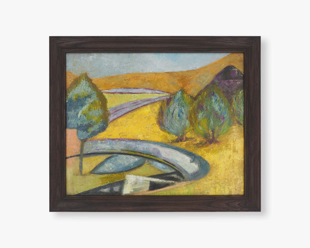 The artwork’s oak frame, with a pickled finish softened by clear oil and lime wax, tempers the vibrancy of the artwork, adding a muted, matte texture.