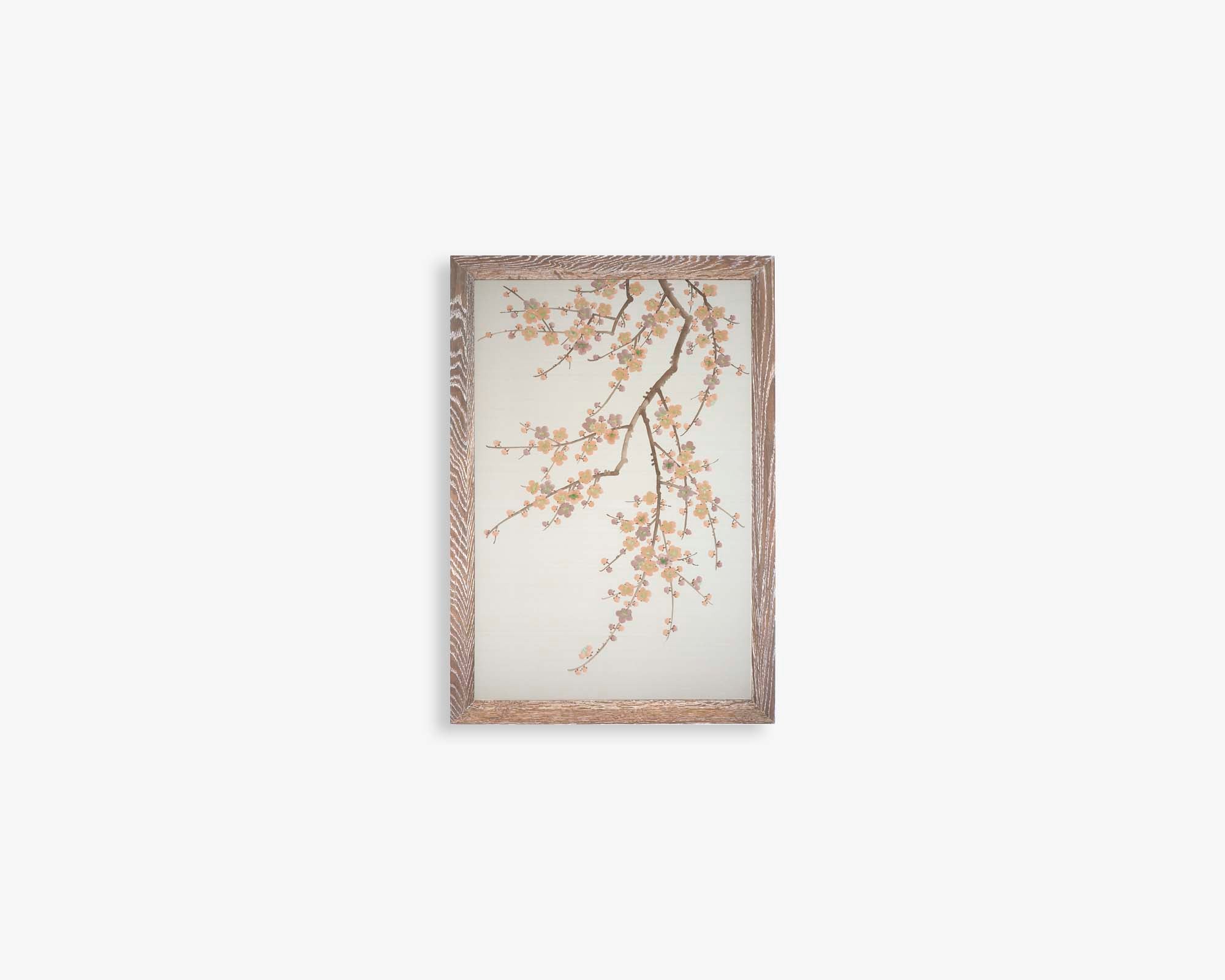 Prunus draws on the rich history of traditional plum blossom painting. A combination of our ‘unconscious’ painting style – which uses graceful, gestural brushstrokes – and the dazzling lustre of the hand-embroidered silk thread provide it with a dream-like beauty.