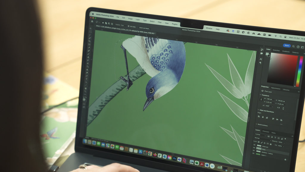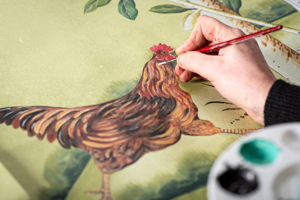 All our printed designs originate as hand-painted, full-scale works of art. We scan the completed paintings in super-high resolution before preparing them for print.