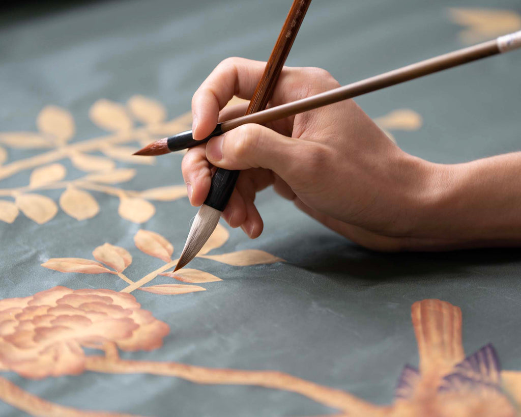 Our artists are masters of traditional Chinese painting and work in teams to meticulously plan out each room before slowly building up the many layers of detail and colour. To achieve intensity and shade, the artist will blend hues, often using two brushes simultaneously.