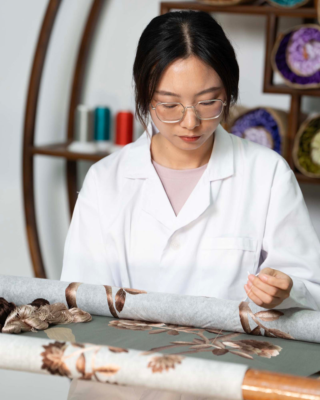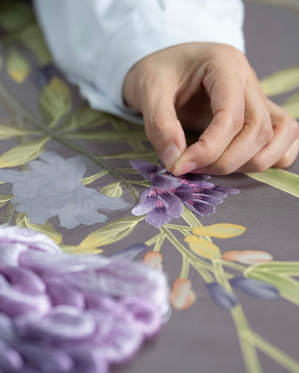 Our embroidery studios are located in a district in Suzhou where embroidery has been the main industry for two thousand years. It is a flourishing part of their local culture, and there remains a strong and proud tradition of passing down skills from generation to generation within families.