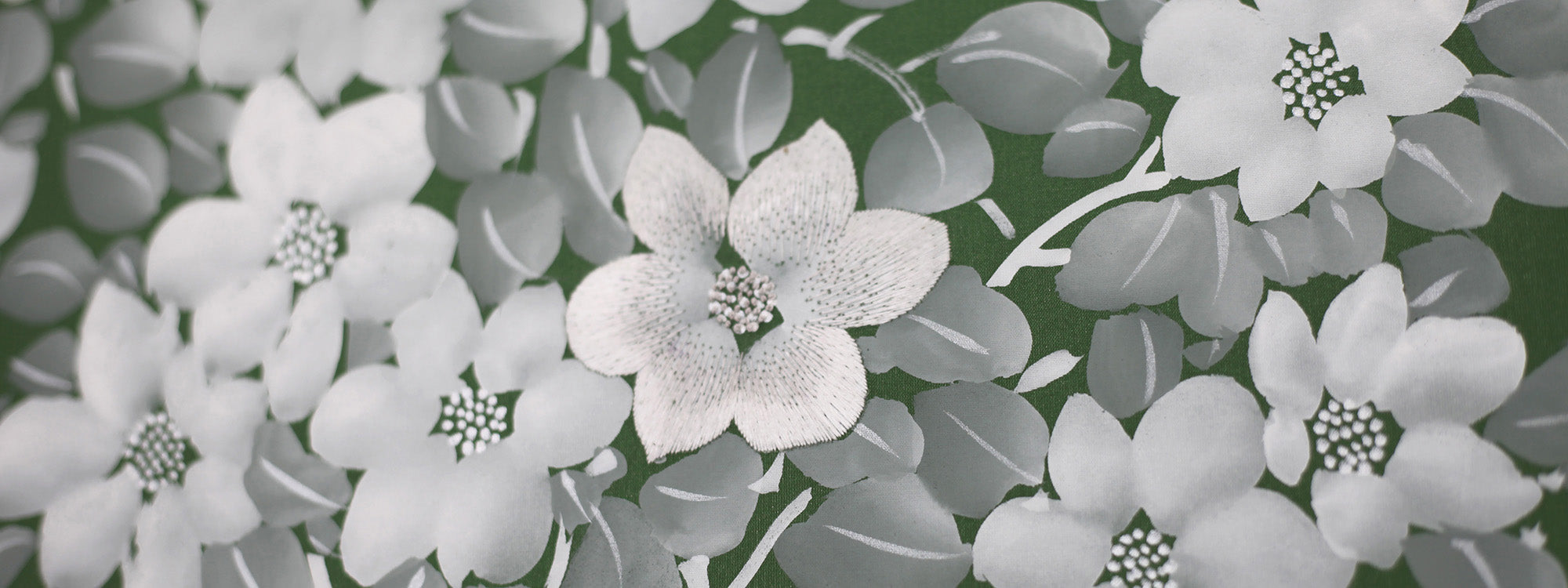 Lush and timeless, Chelsea Green immerses the design in a rich, verdant silk backdrop, echoing the serenity of Katharine Pooley’s favourite London sanctuary, Chelsea Physic Garden. Flowers are rendered in muted tones, allowing delicate butterflies, mice, and hedgehogs to add vibrant, unexpected moments of colour.