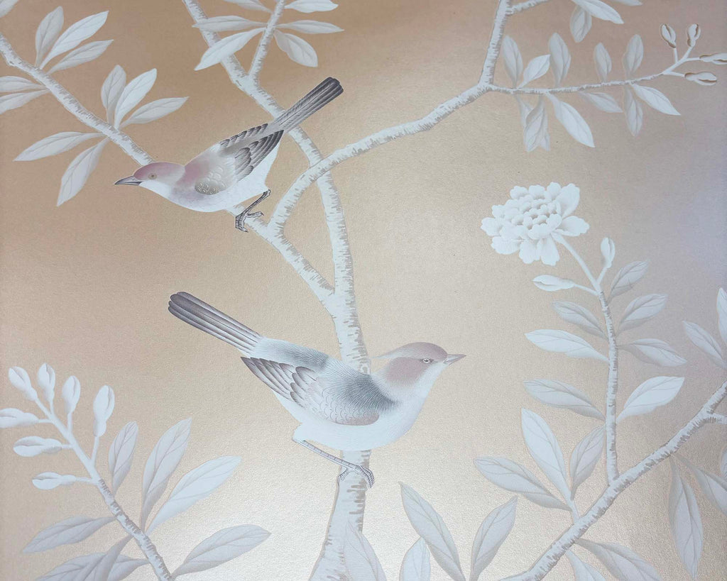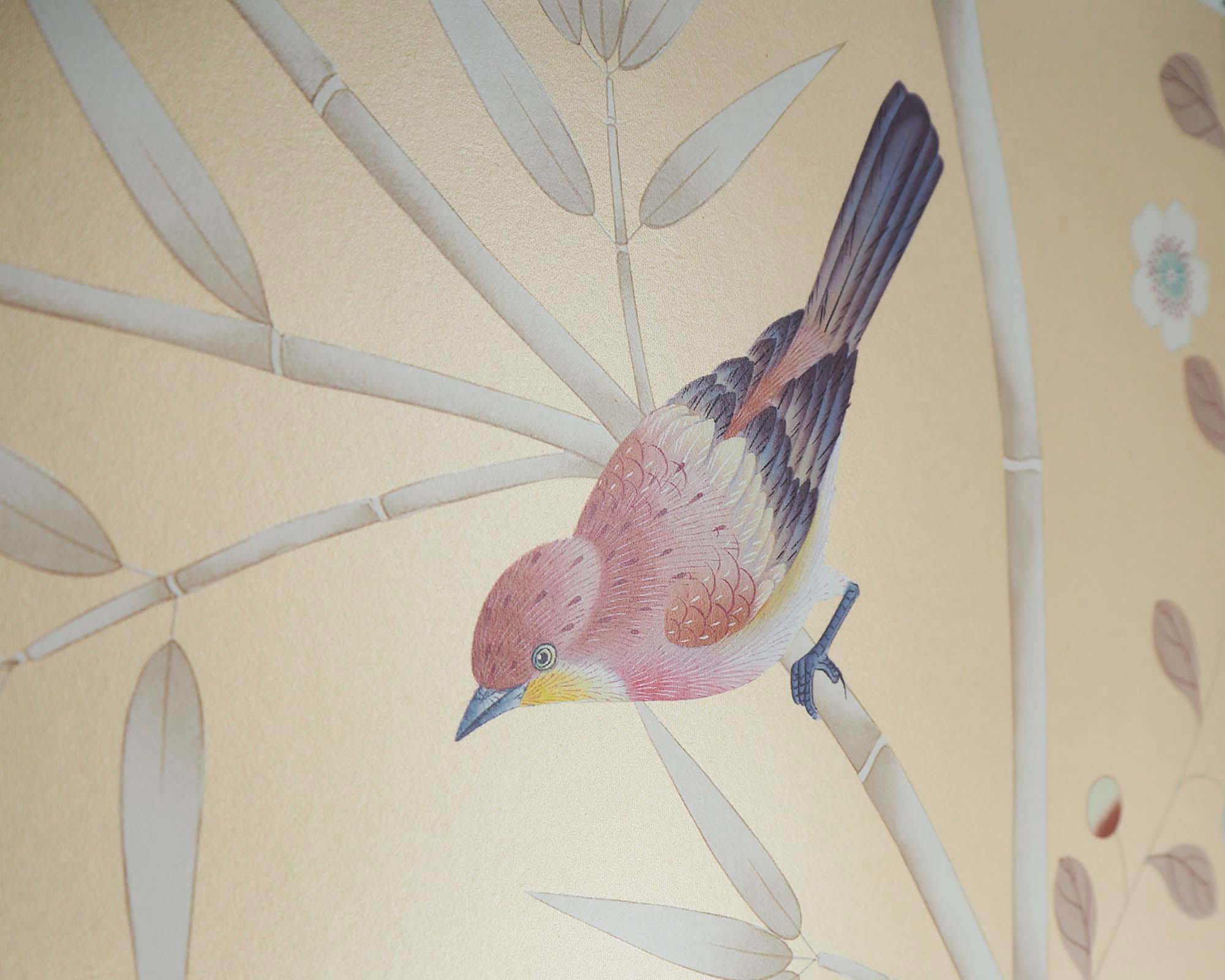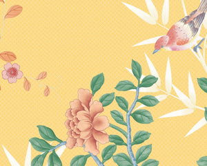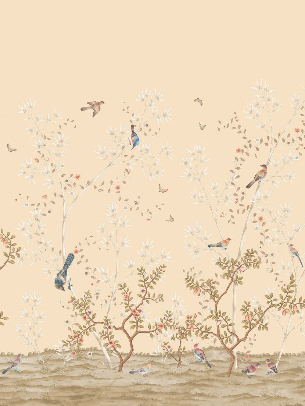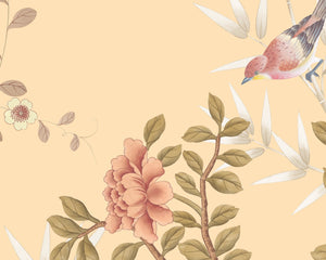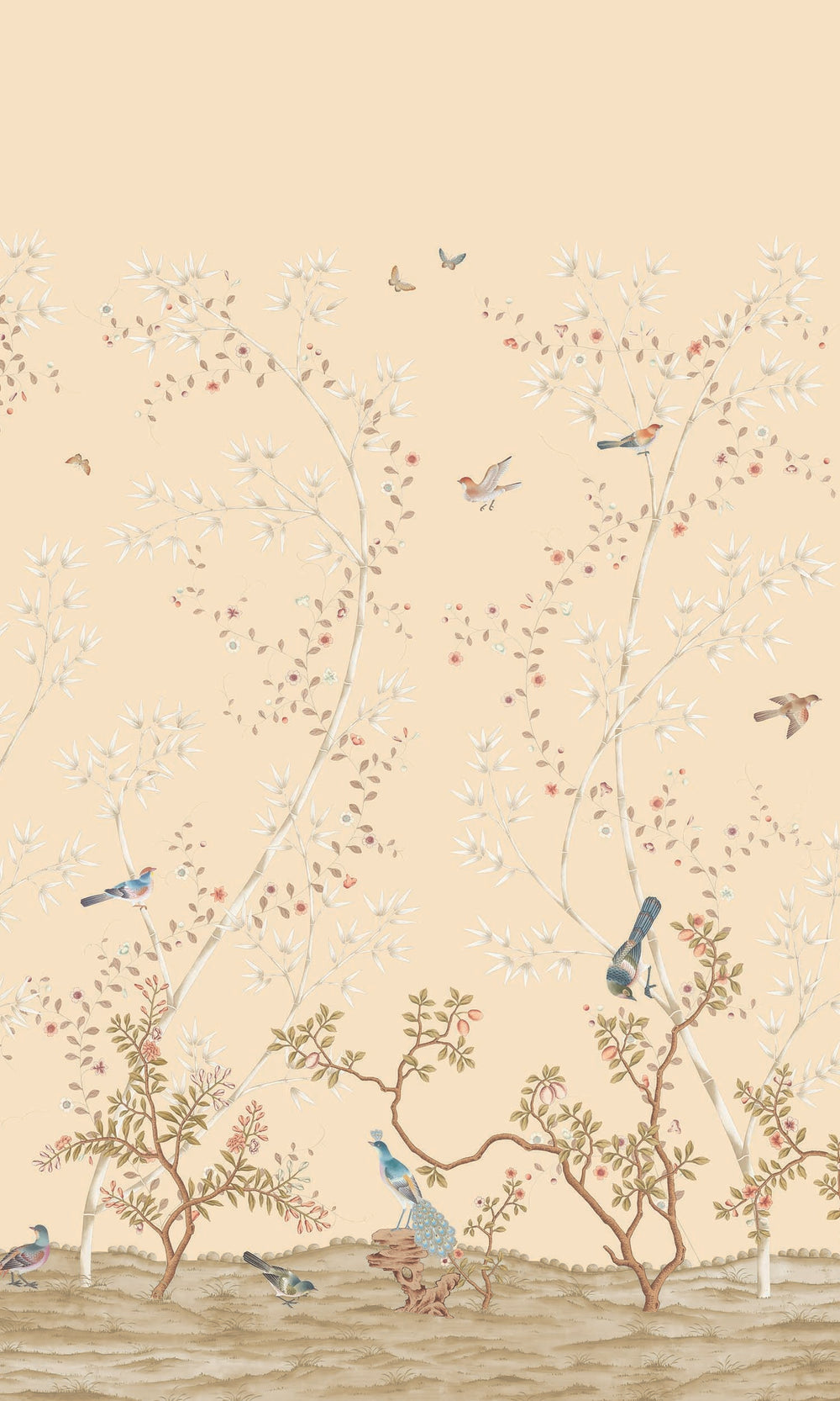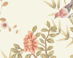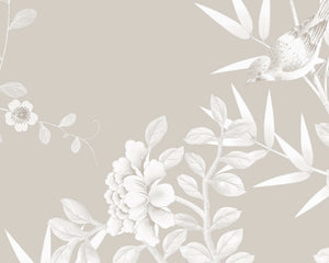 Bambois is a contemporary take on Chinoiserie, where dynamic bamboo stems form a natural framework for climbing vines, unfurling peonies, birds and butterflies. This versatile design lends itself beautifully to both bright palettes and muted monochromes