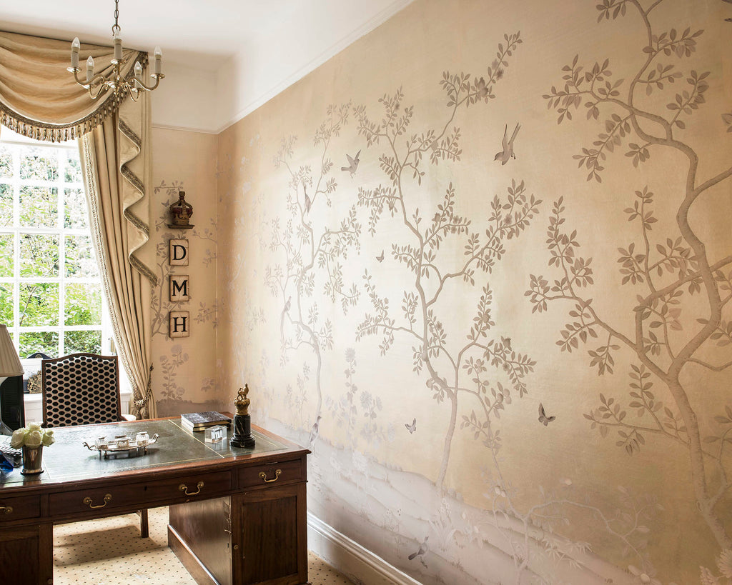 For panoramic designs, simply measure the perimeter of your space and the height of your walls, then use our roll calculator to determine how many you need. Select the design height that suits your space, and for tricky areas like alcoves, consider adding a plain background roll.