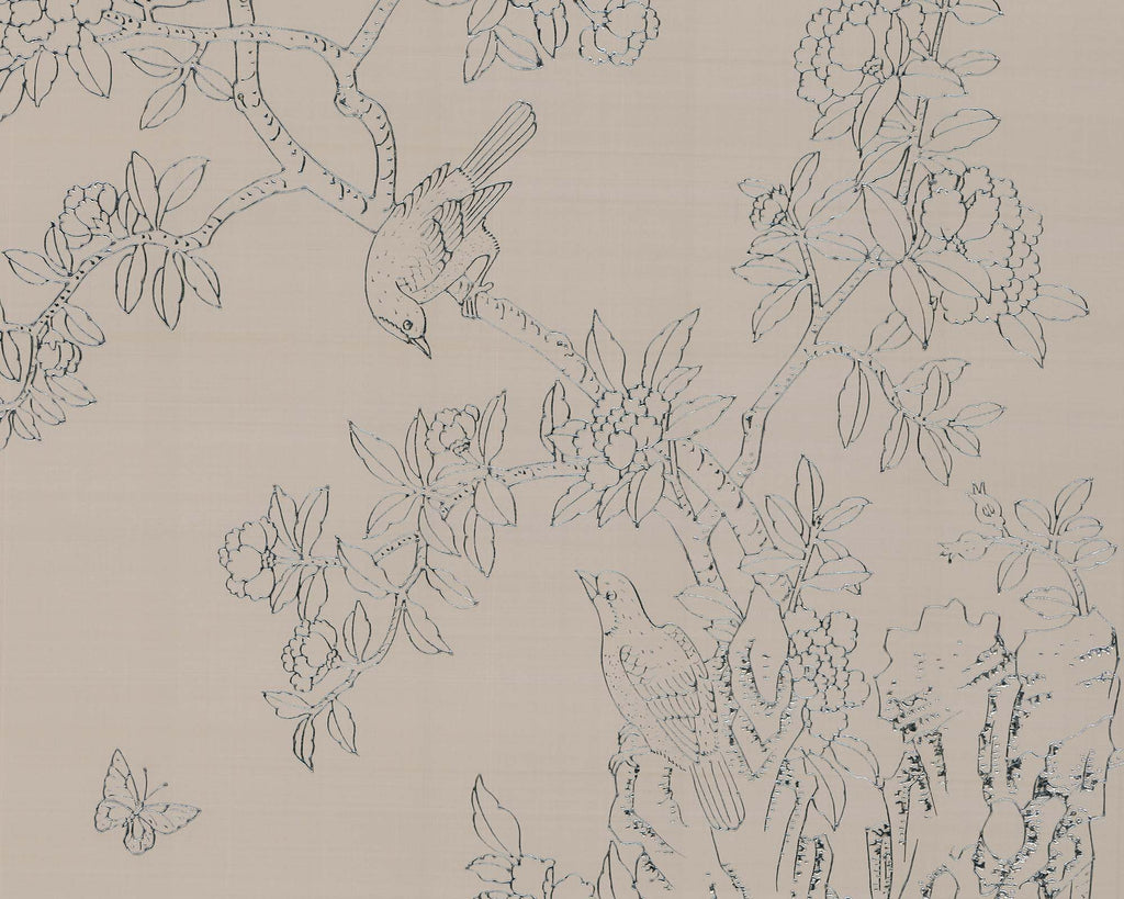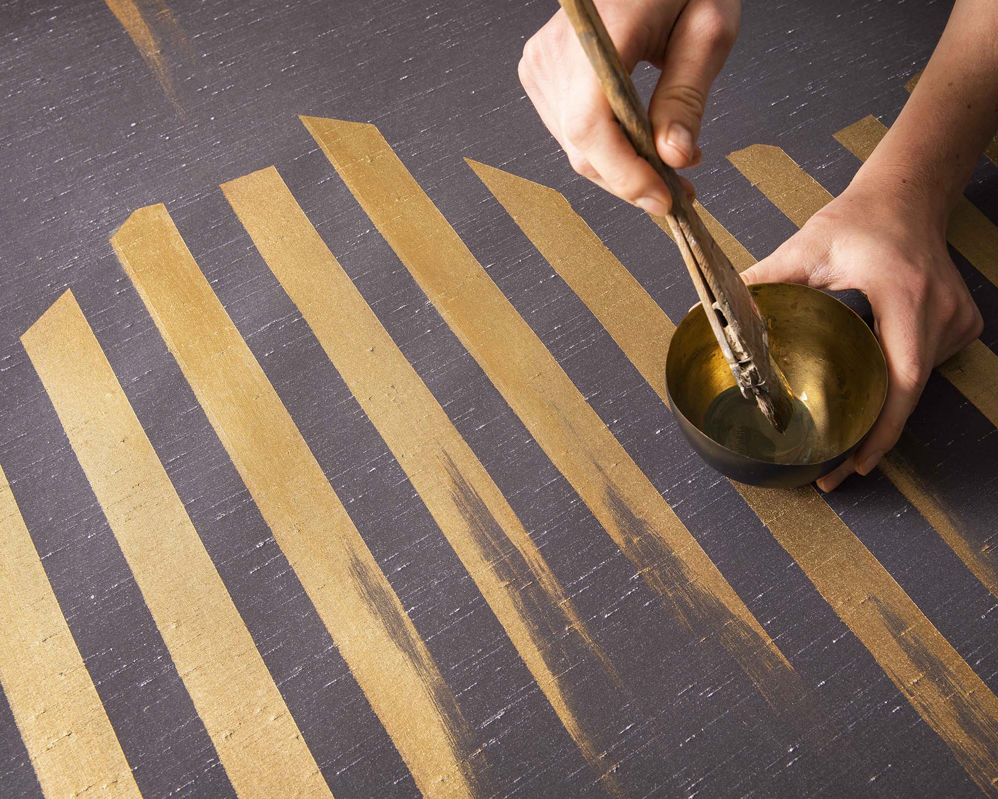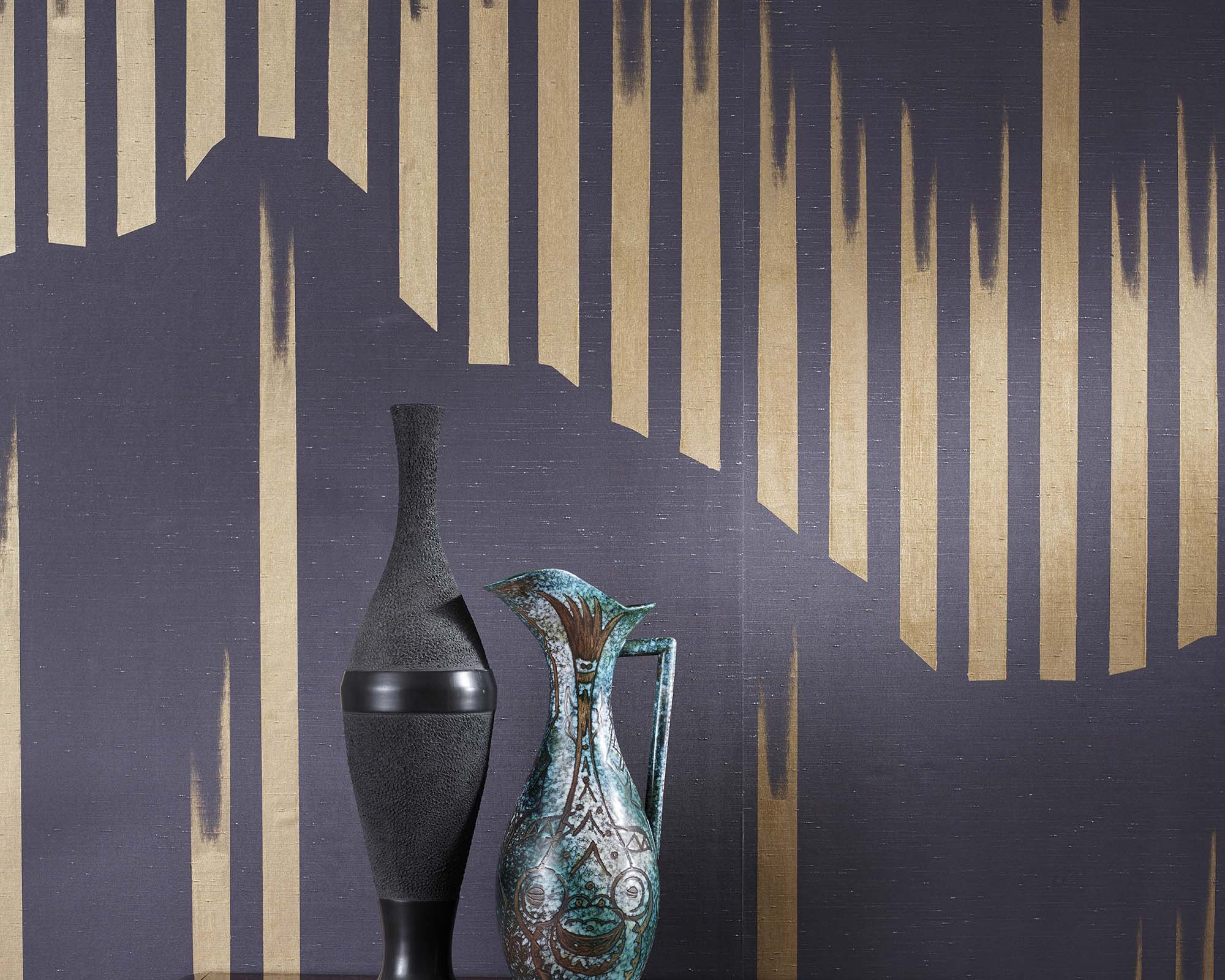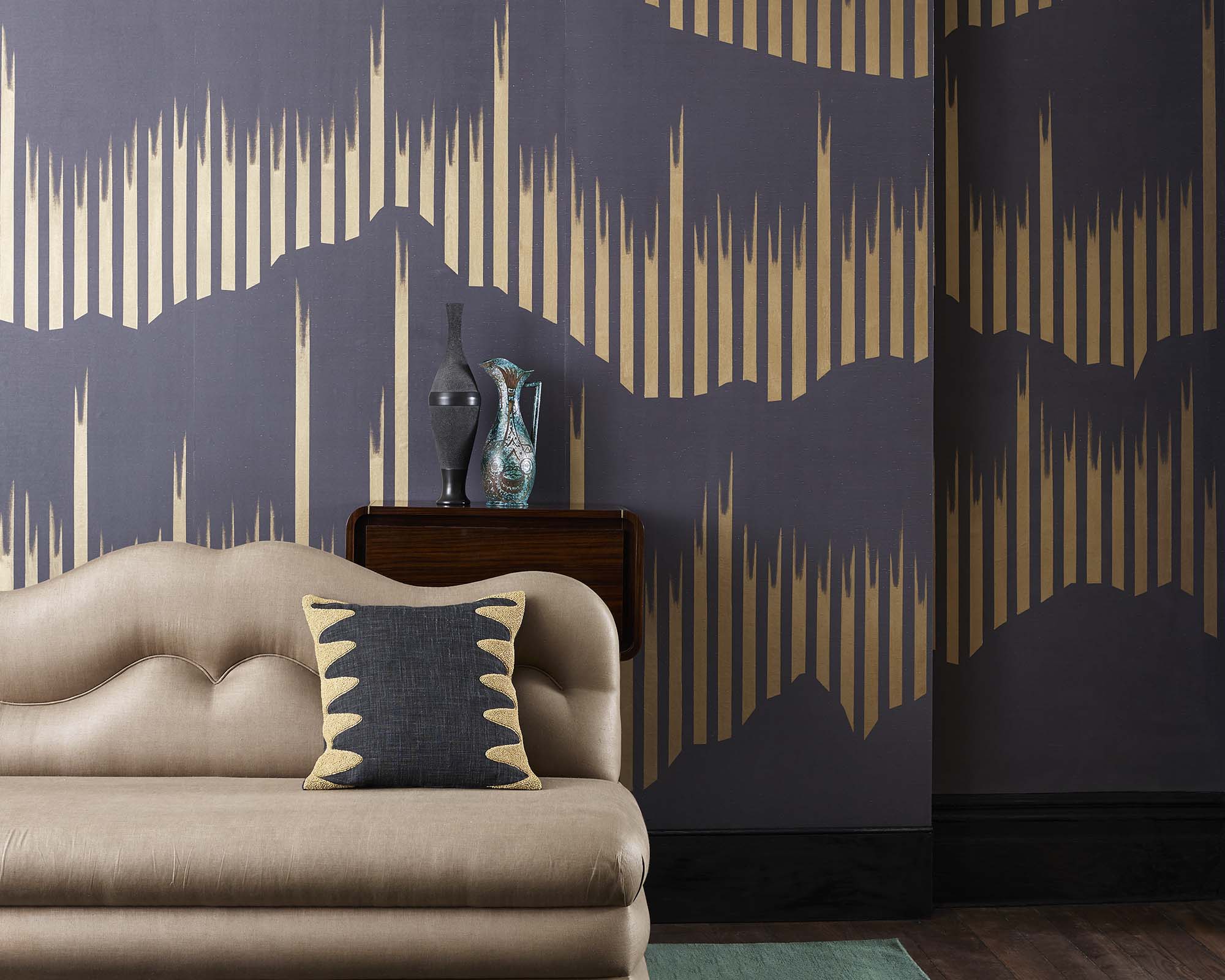 A graphic interpretation of light silhouettes dancing through bamboo stems, this enchanting design has a wonderful sense of movement. Simple yet versatile, Bamboo Lights strikes an expansive pose, the vertical lines bringing height to a low-ceilinged room and the horizontal rows adding width to a narrow space. It is available fully hand-painted onto silk or hand-painted onto a printed Rayonne background.