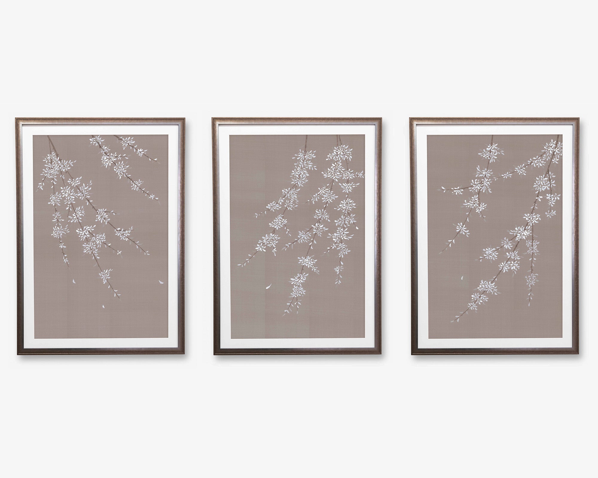 Available in two sizes, with different compositions to be hung as a single, a pair or a triptych.