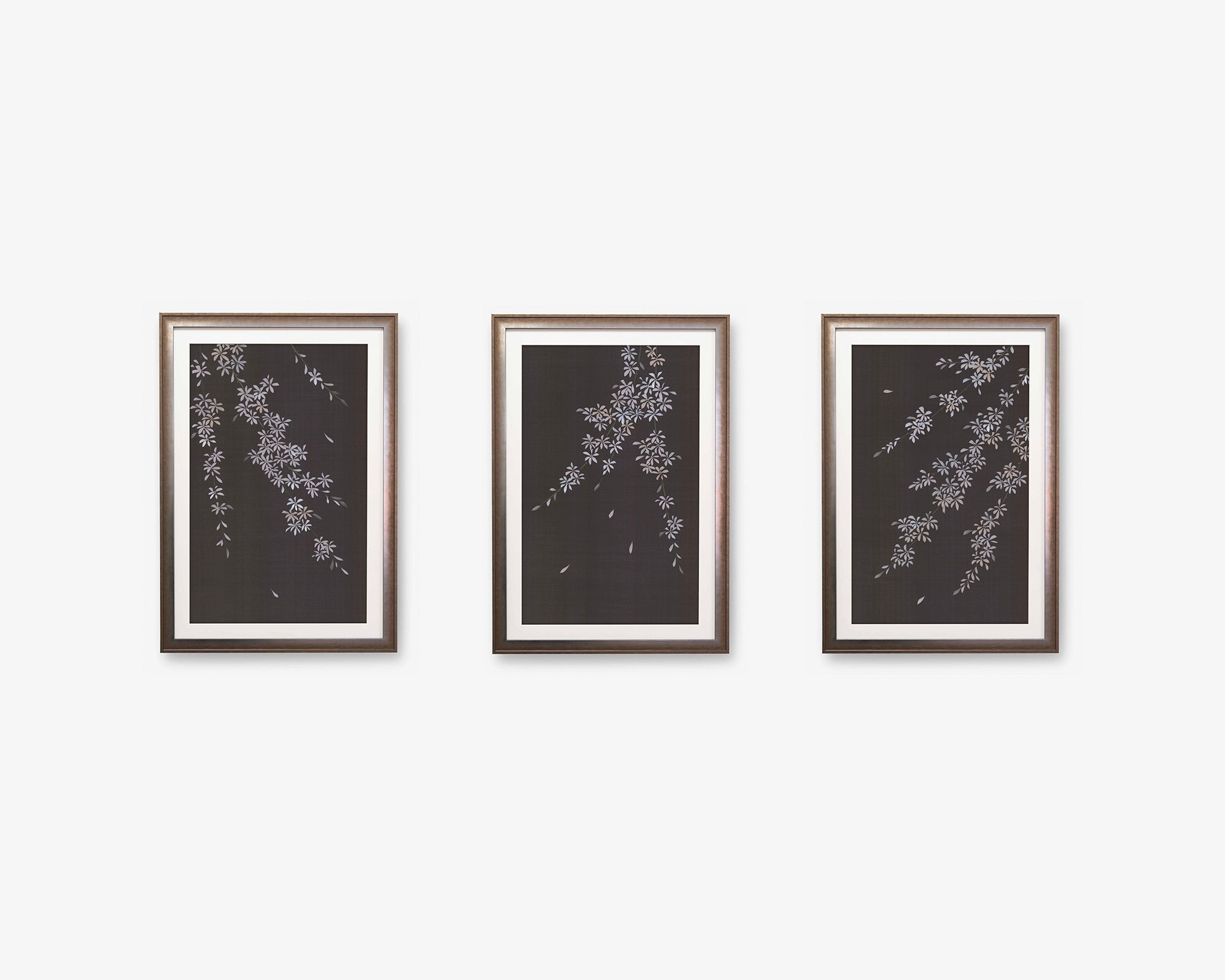 Available in two sizes, with different compositions to be hung as a single, a pair or a triptych.