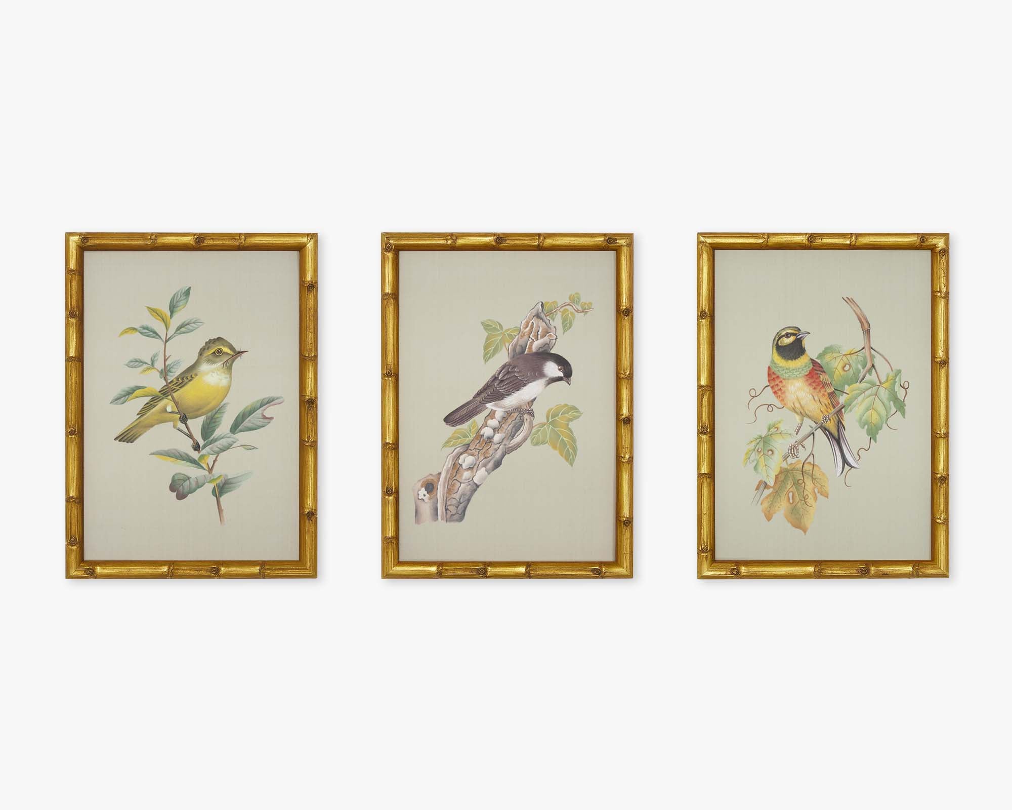 • This series of original bird paintings – presented in gilded bamboo frames – is our homage to the great Giuseppe Castiglione. Castiglione pioneered the fusion of European and Chinese traditions, a theme very close to our hearts here at Fromental.
