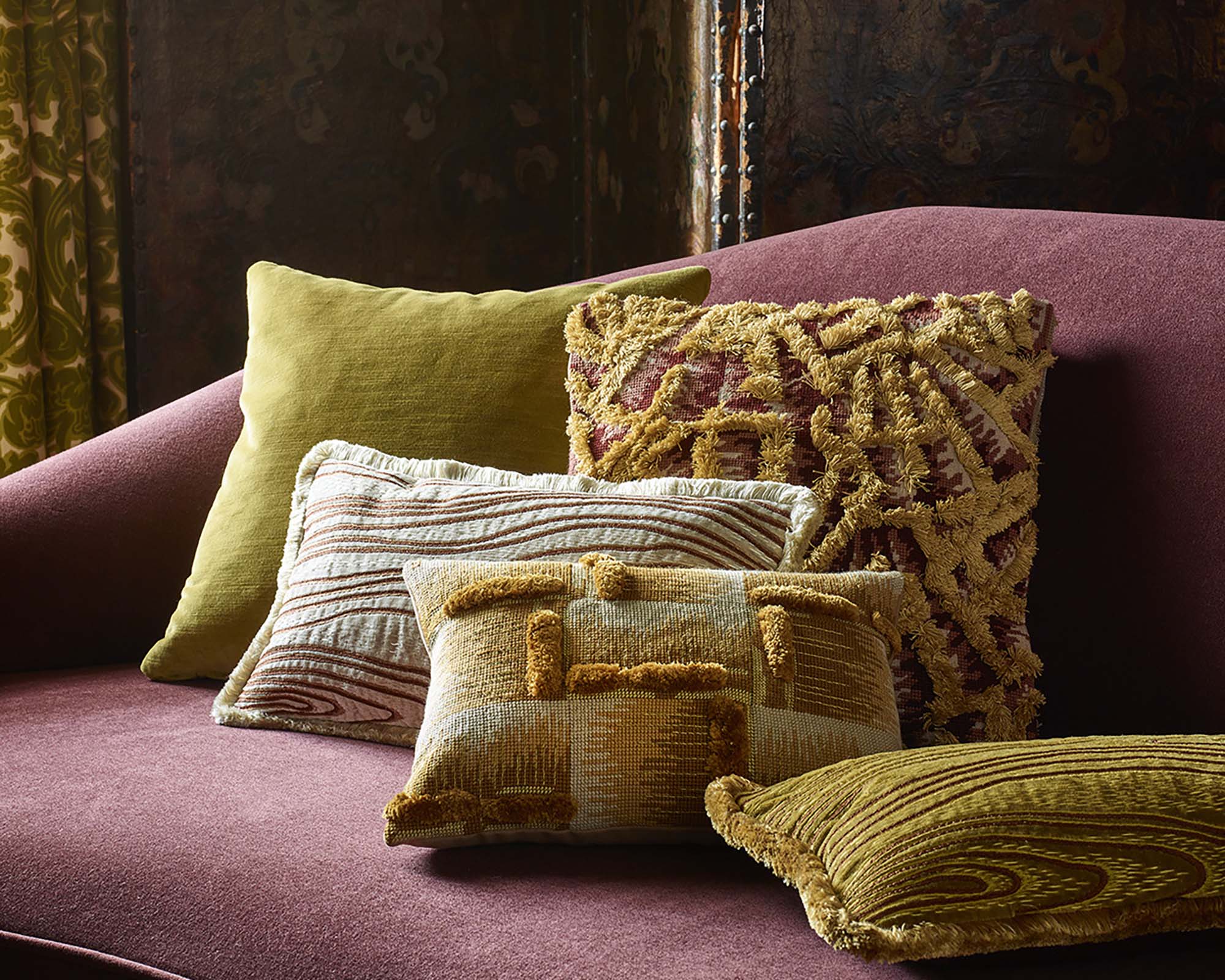 The resulting contrasts in texture conjure train carriage upholstery from the 1920s, while the chic colourways and quality of the materials – which include 100% British tapestry wool – bring a sense of extravagance to each handmade piece.