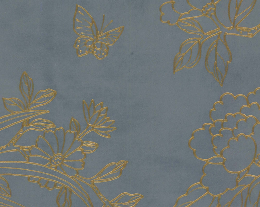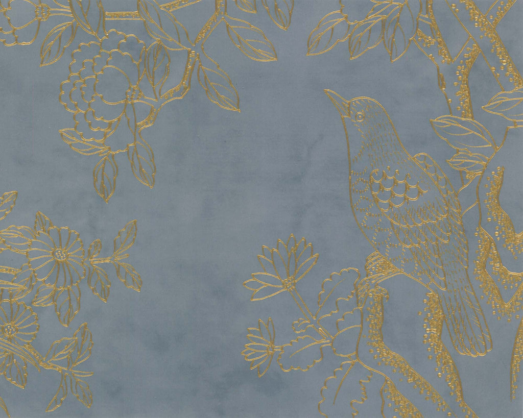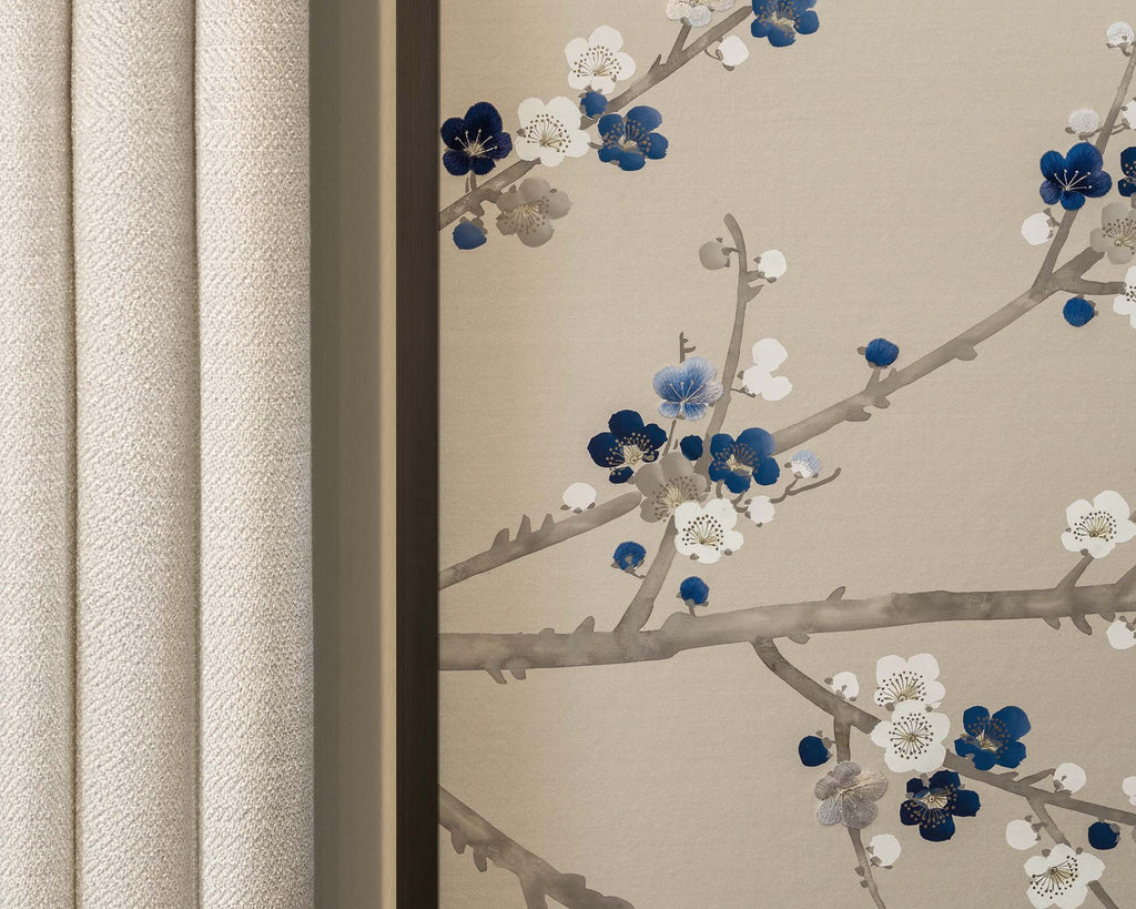 A simplistic, blue monochrome palette, on a papyri paper ground makes this colourway Folly's most restful and contemporary.