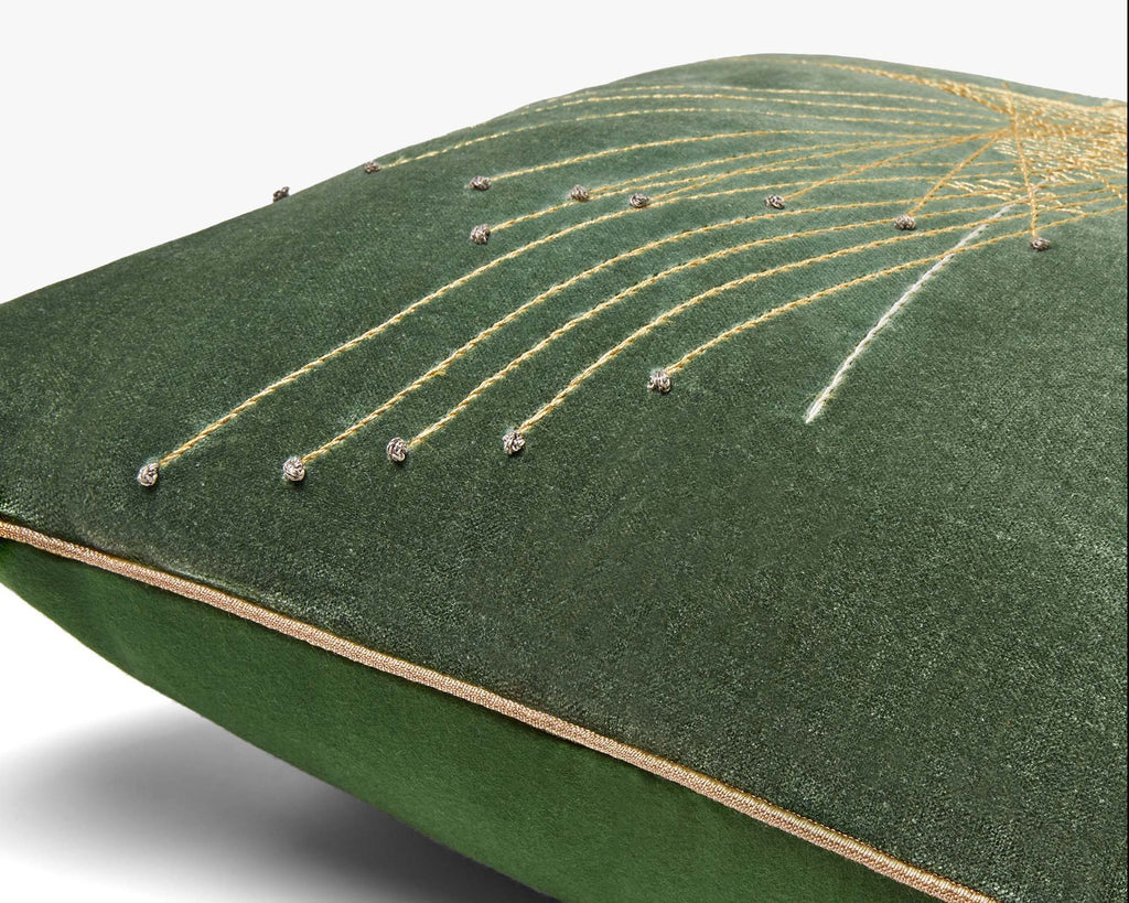 In this colourway, subtle graduations of warm bronze and cream embroidery are set against a rich olive-green velvet ground, creating an earthier interpretation of Bérard's expressive aesthetic.