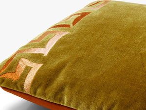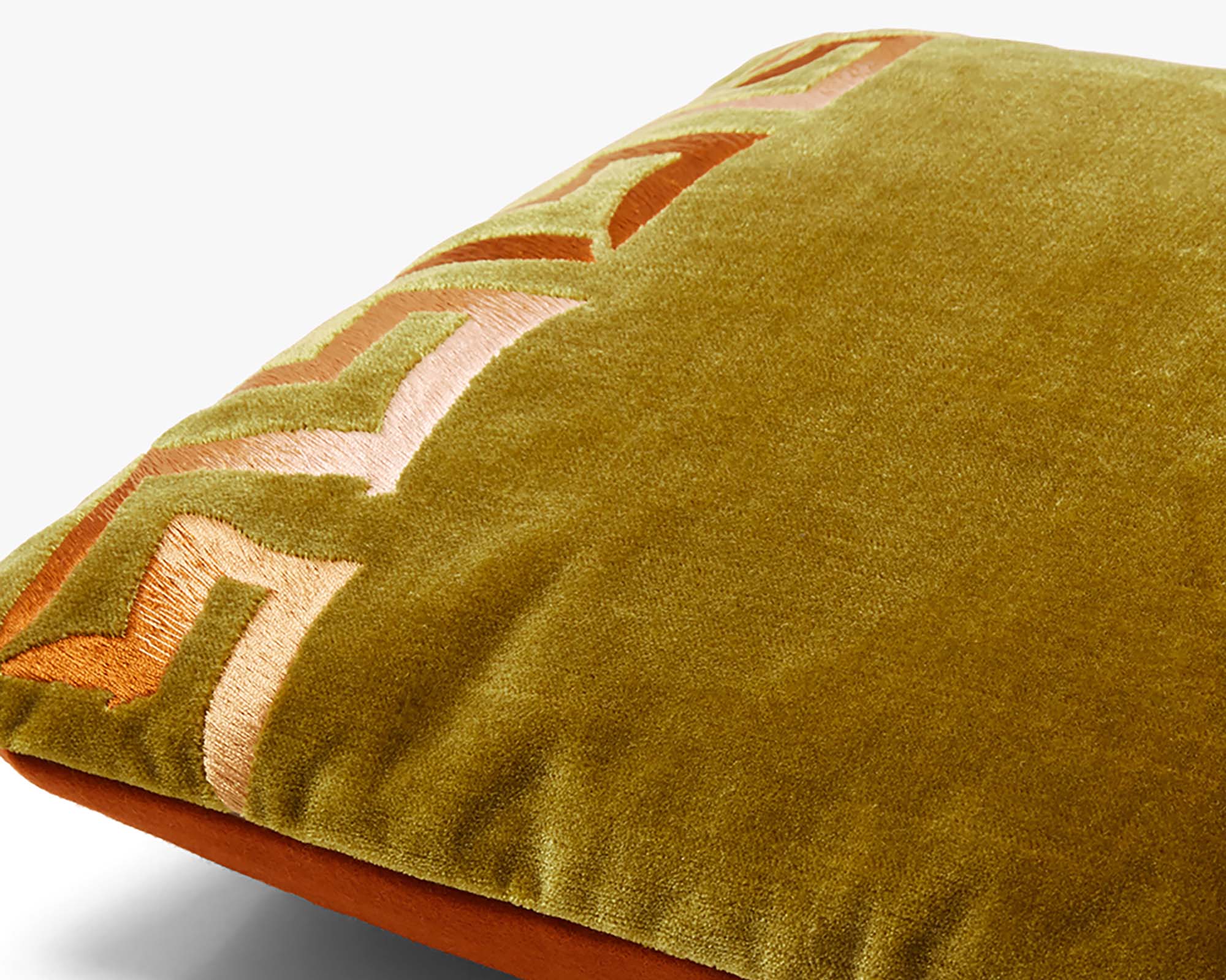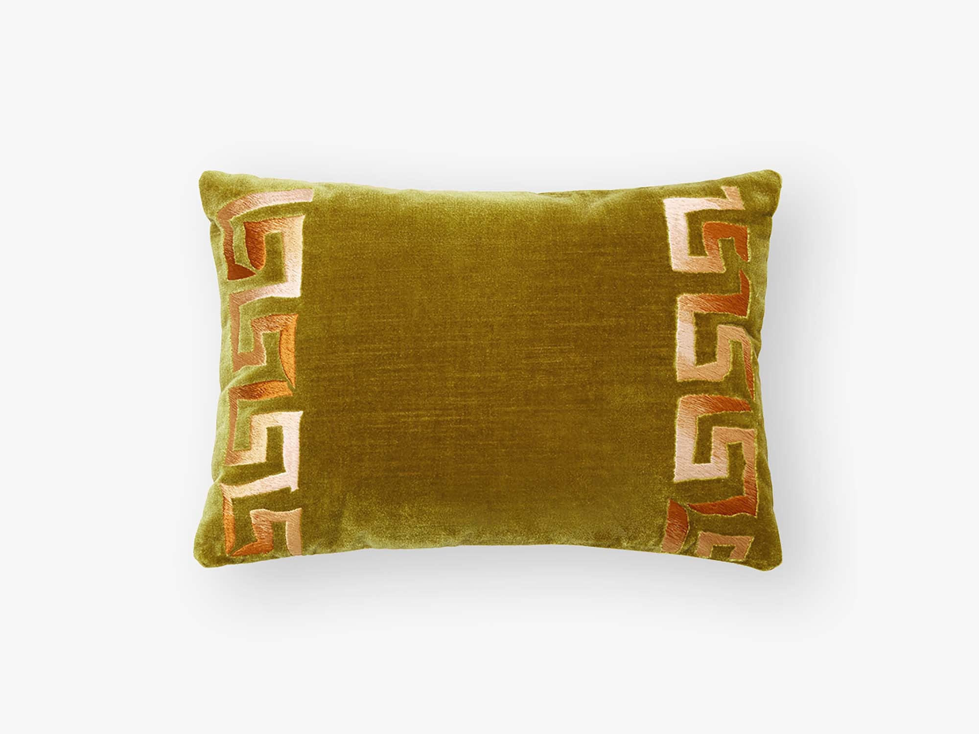 Drawing inspiration from the expressive brushwork of fashion illustrator, Christian Bérard, Greek Key interprets a classic motif through delicate hand- embroidery. Lustrous cotton threads create a dimensional quality when worked across velvet, resulting in a richly tactile finish.