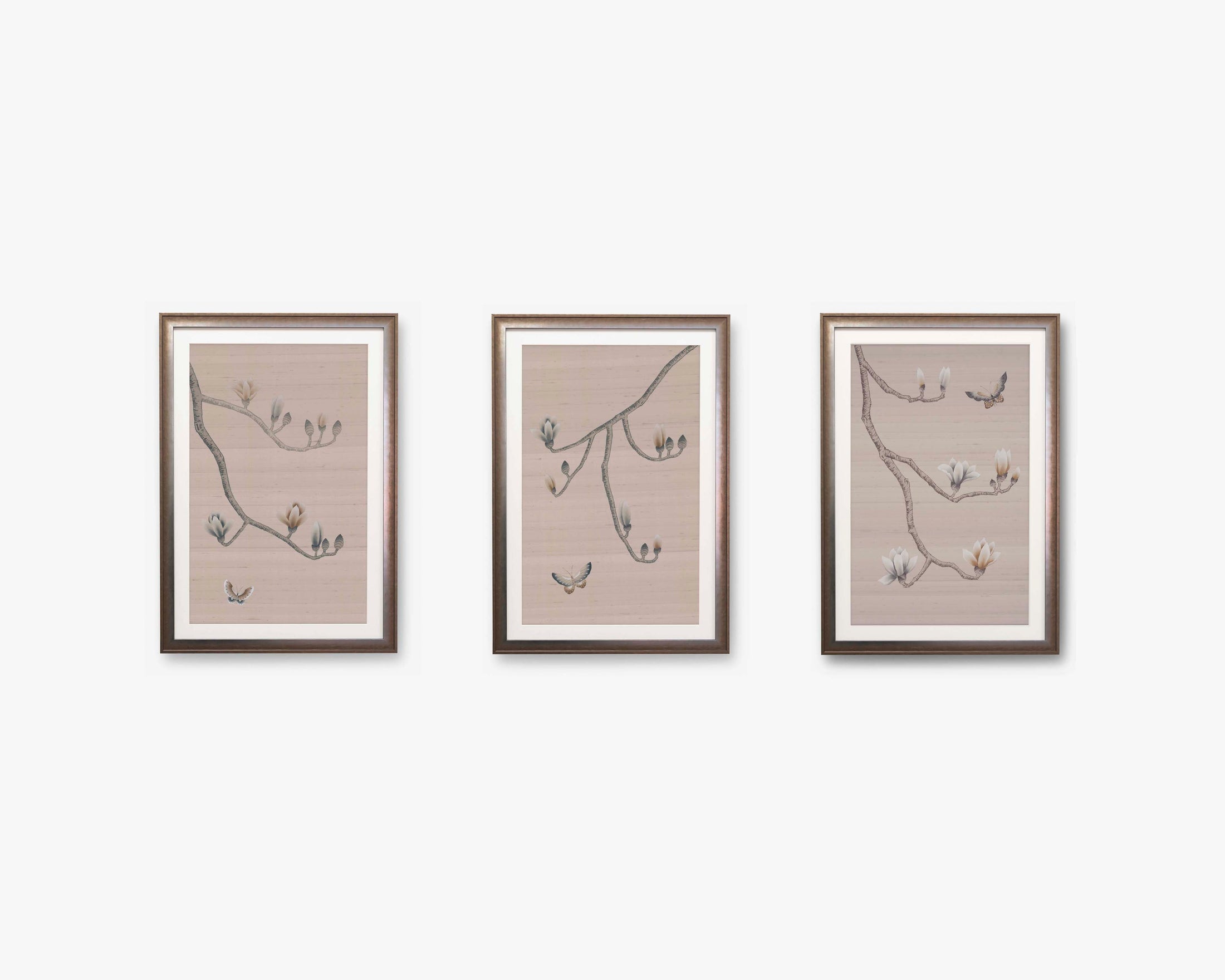 • In Chinese culture, the magnolia tree is a recognised symbol of purity and nobility. This refined, modern chinoiserie design is entirely hand-painted, its well-defined branches balanced by the femininity of the magnolia flowers and butterflies.