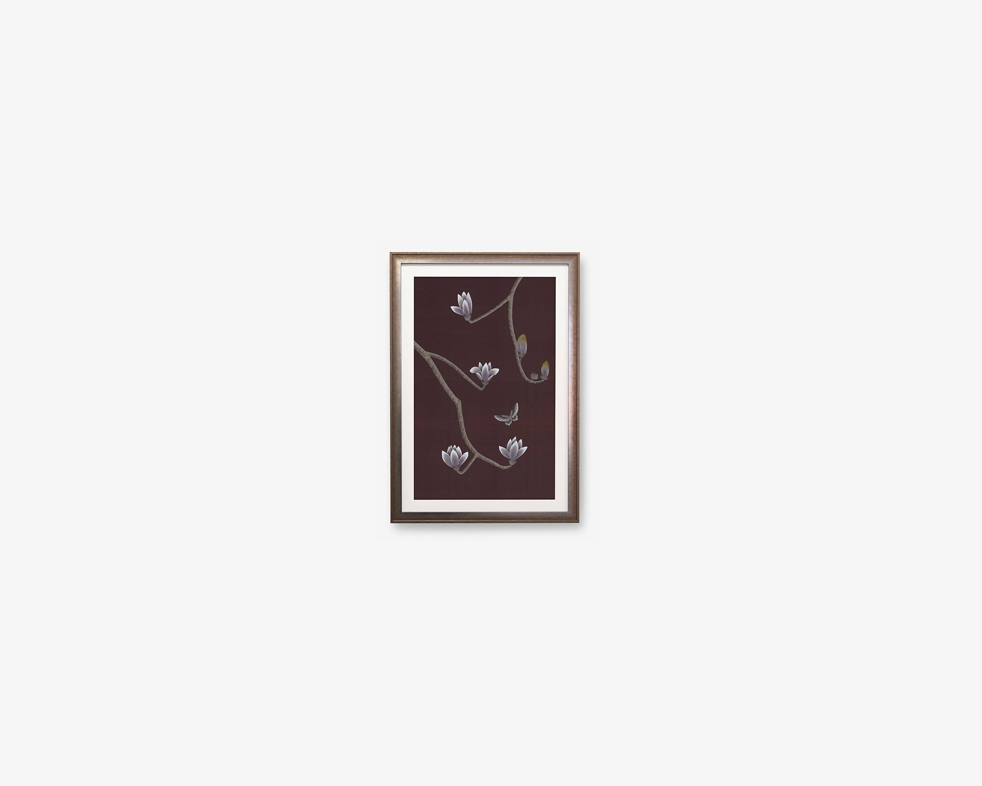 In Chinese culture, the magnolia tree is a recognised symbol of purity and nobility. This refined, modern chinoiserie design is entirely hand-painted, its well-defined branches balanced by the femininity of the magnolia flowers and butterflies.