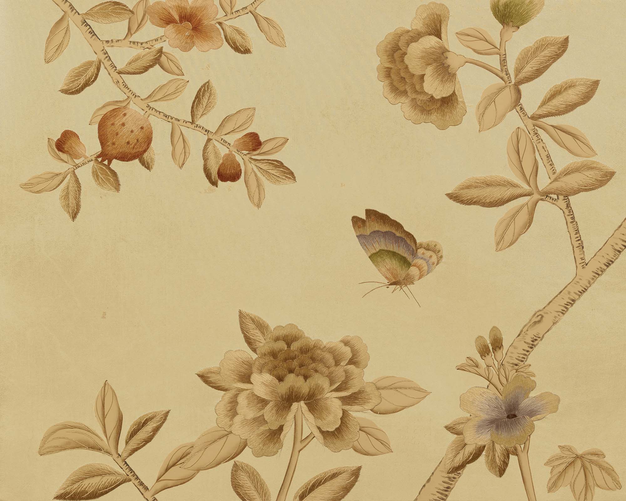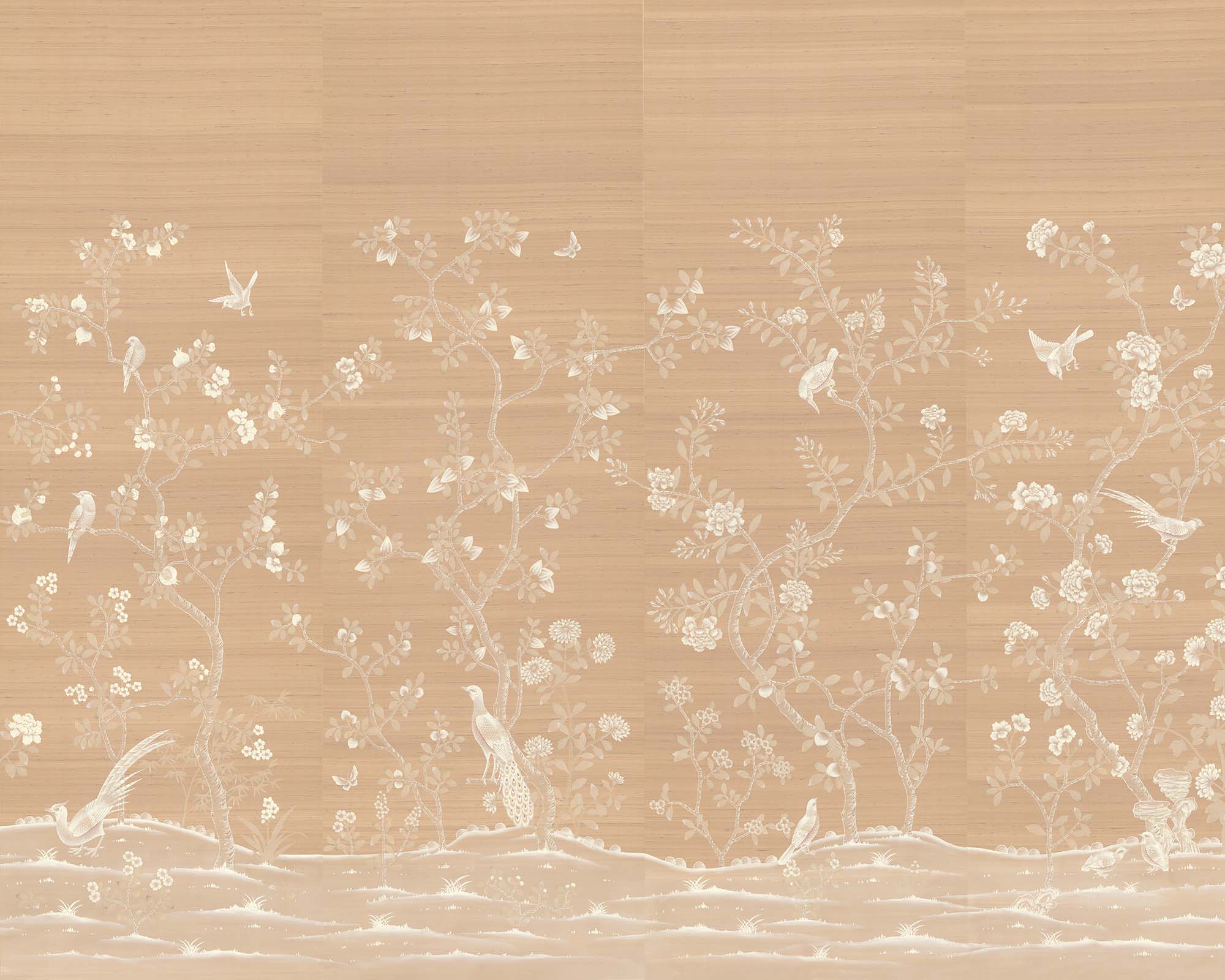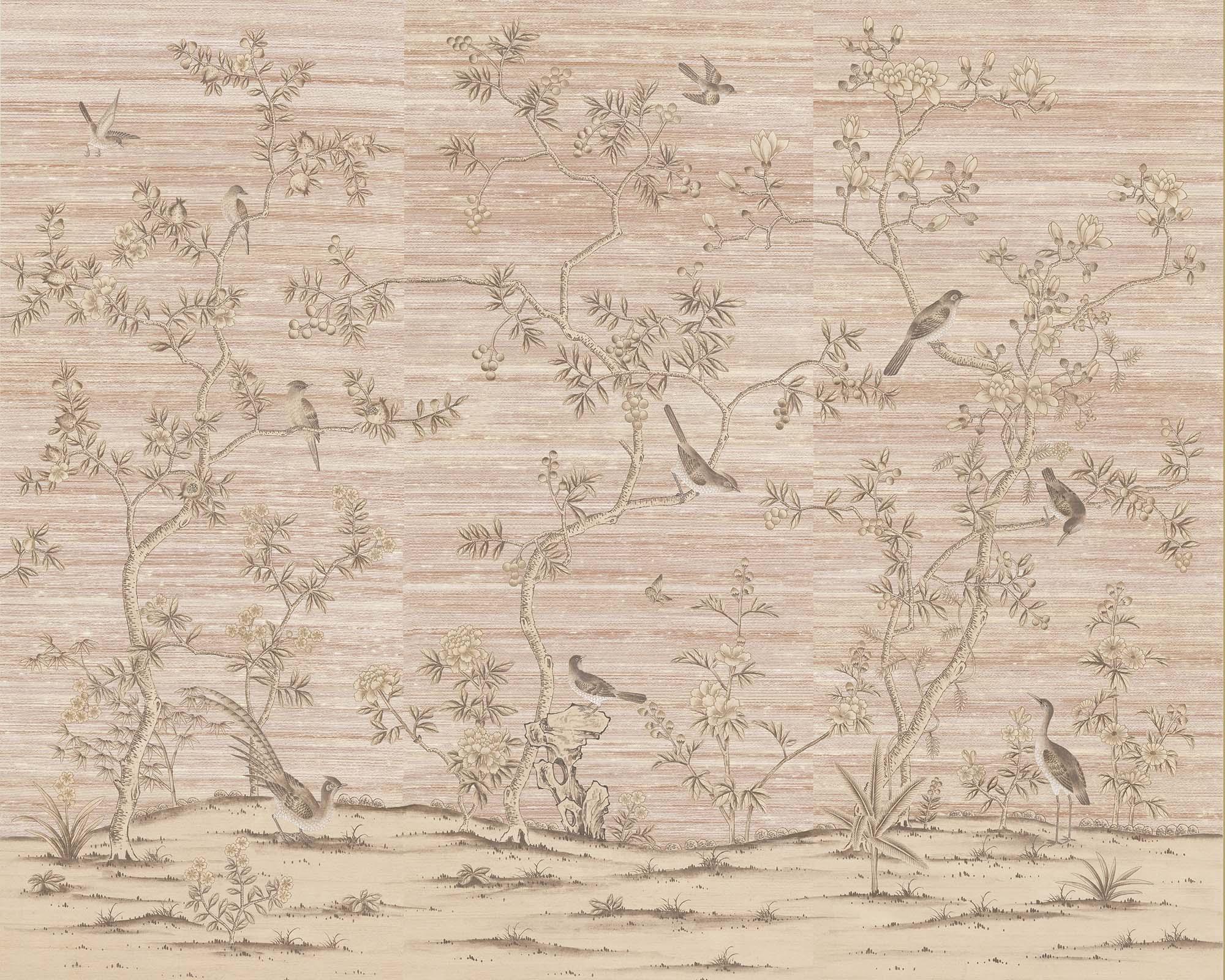 Nonsuch is an effortlessly romantic scheme with a slightly more European feel than some of our other Chinoiserie designs. Highly decorative and with a variety of flora – magnolias, fruit trees, peonies – this pattern fills the walls with beauty and detail.