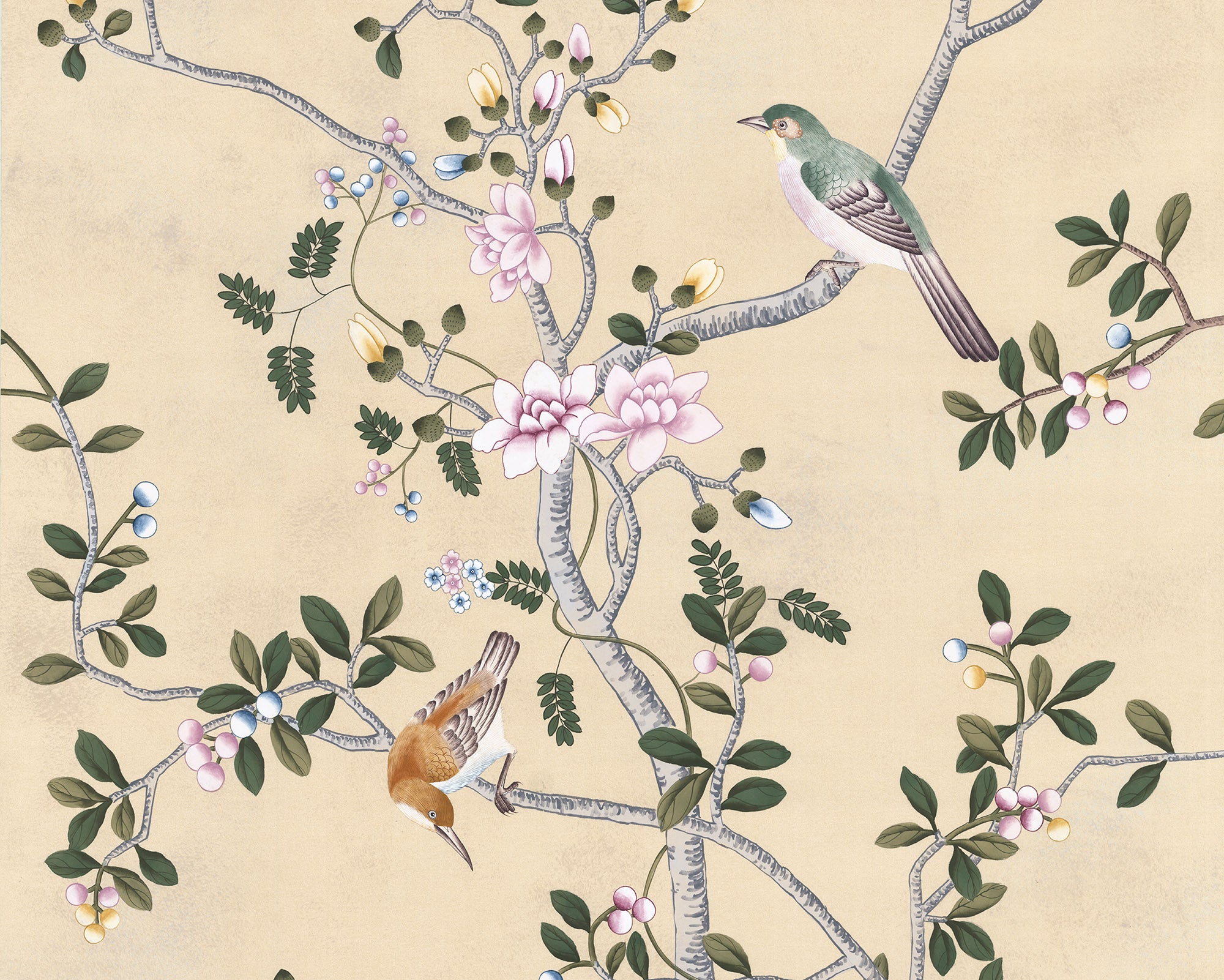 A romantic Chinoiserie with a European touch, rich in historic flora yet refreshingly modern, filling walls with beauty and depth.