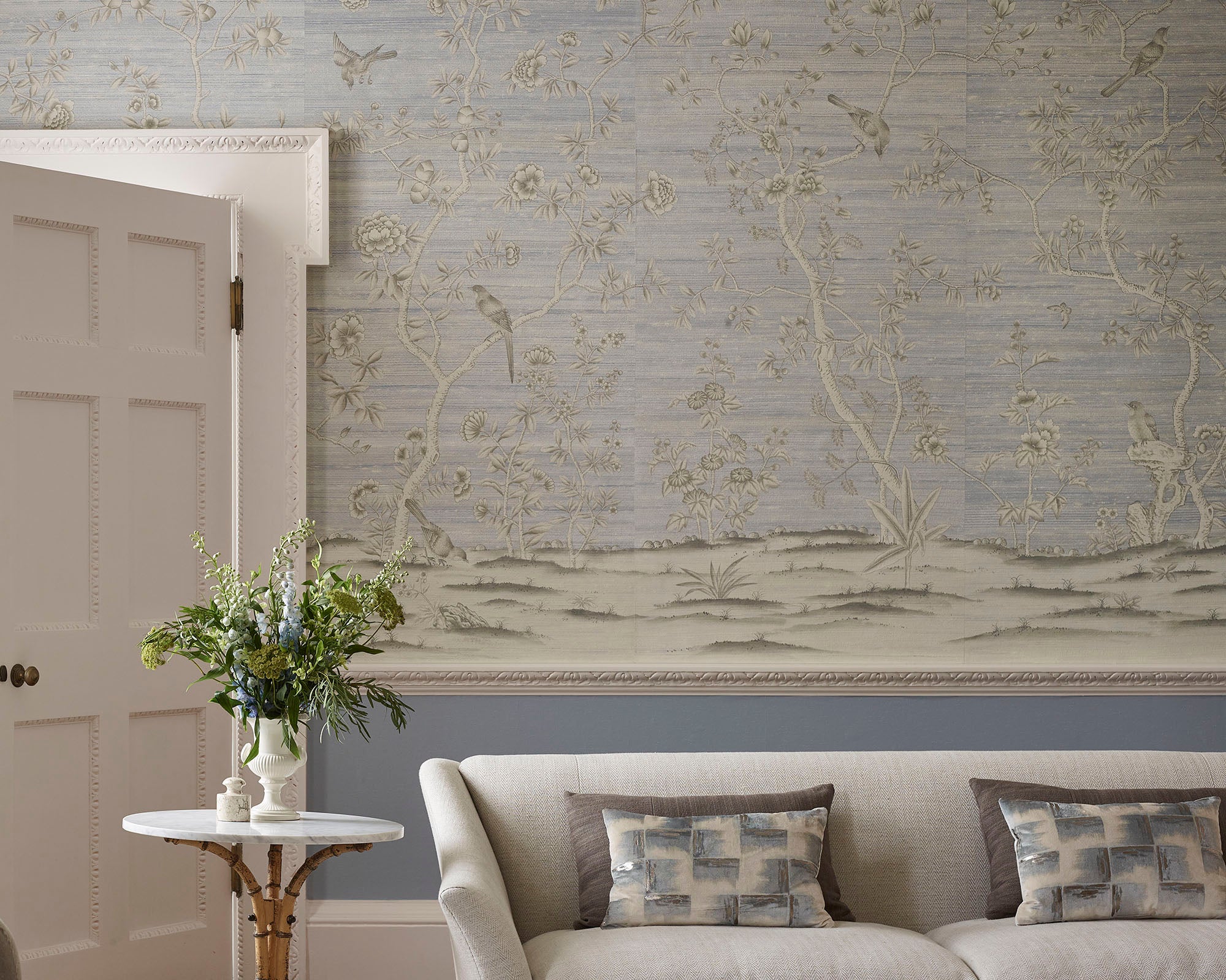 A romantic Chinoiserie with a European touch, rich in historic flora yet refreshingly modern, filling walls with beauty and depth.