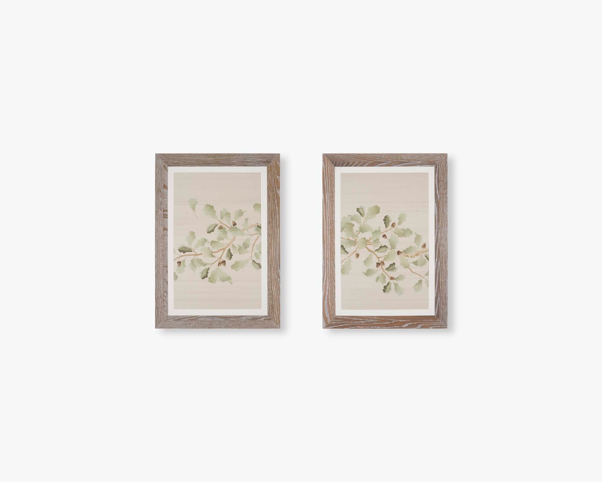 • Hand-painted branches, lush with leaves and acorns, dance elegantly across a silk canvas in collaboration with British interior designer Sophie Paterson. In this limited edition, oak is both subject and material — each silk-thread-embroidered painting set within a bespoke oak surround that reflects the design itself.