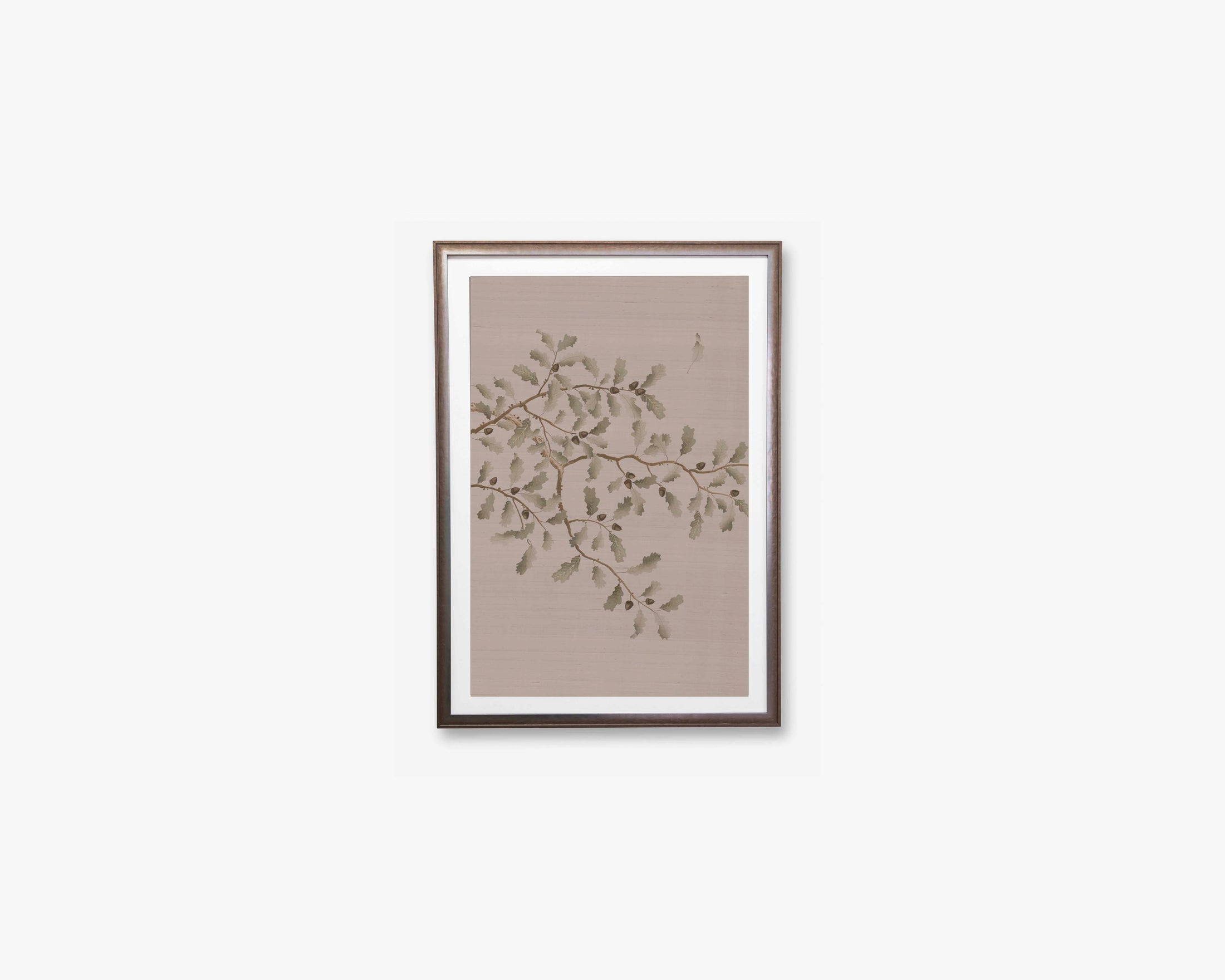 Hand-painted branches, lush with leaves and acorns, dance elegantly across a silk canvas. The design bridges a masculine-feminine aesthetic and both colourways feel fresh for the summer months but cosy in the winter. Bur summons a naturalistic palette of greens, whilst Fig offers a refined and tonal alternative.