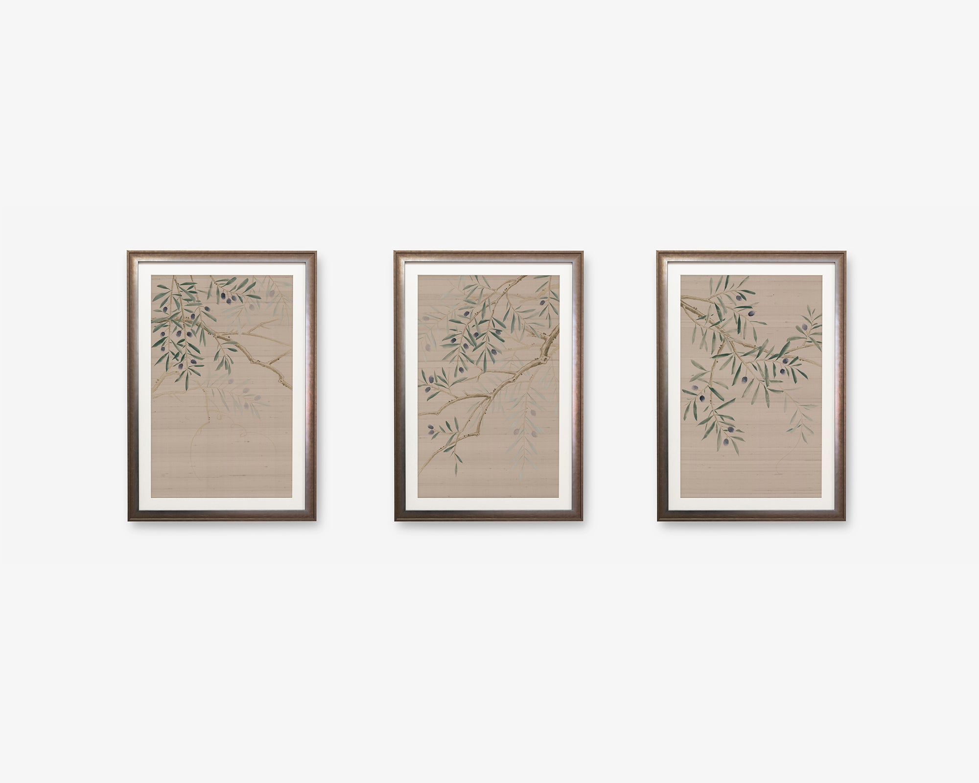 Known as the tree of peace and eternity, the olive tree’s significance is firmly rooted in Ancient Greek tradition and mythology. The naturalistic Chinese painting style captures the delicate vines winding across the silk and branches bearing olives.