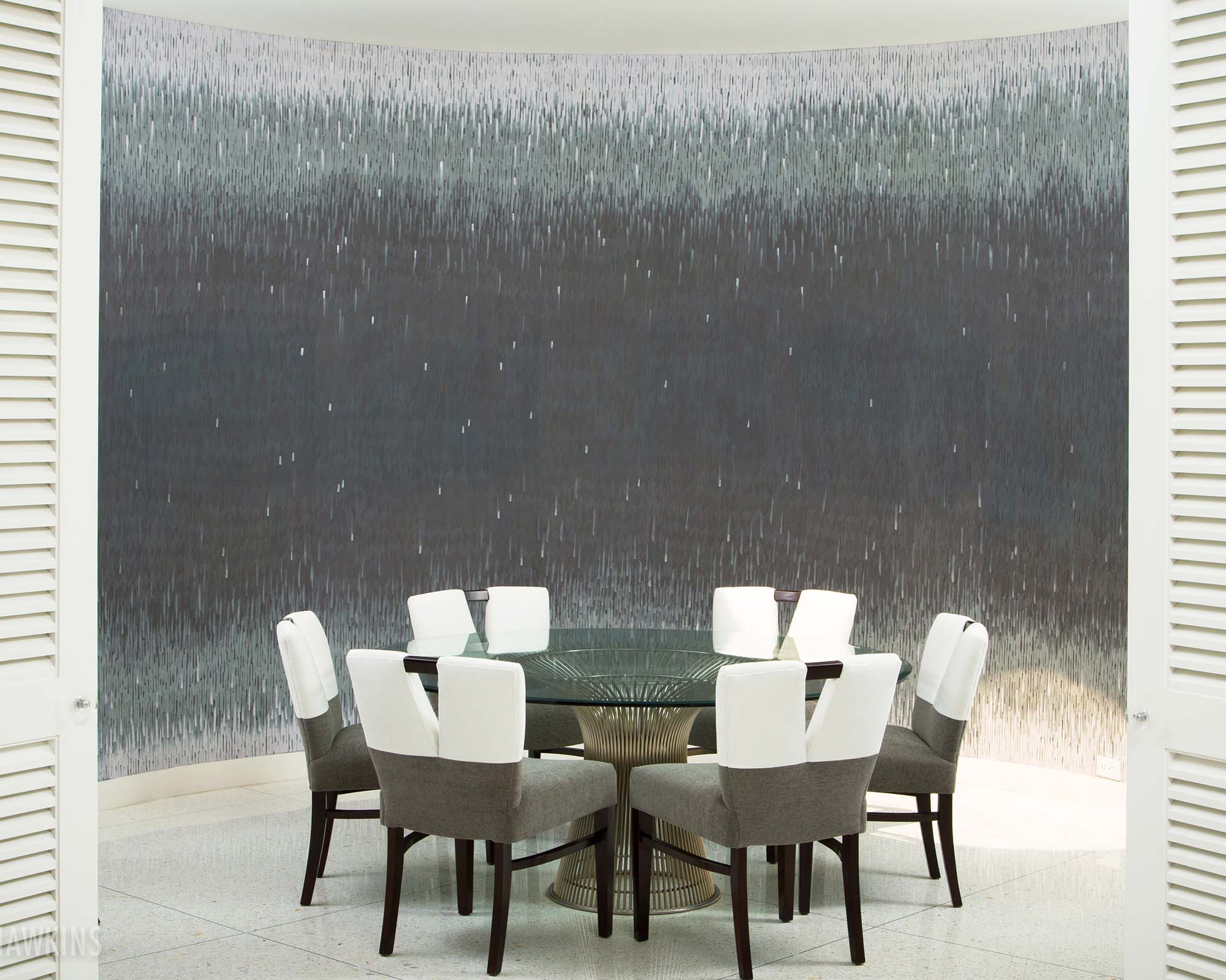 Inspired by acclaimed designer Jean-Michel Frank’s use of straw marquetry, we have created Paille. The defined, graphic brushstrokes are intricately applied, with the sheen of the silk peering through the negative spaces. This, combined with Paille’s ombré effect, creates an illusion of gradation, visible when light reflects back from walls of straw marquetry.Hand-painted vertical strokes are built up, creating a gradated effect; this forms the shadows and highlights that are integral to the simplistic beauty of this design.