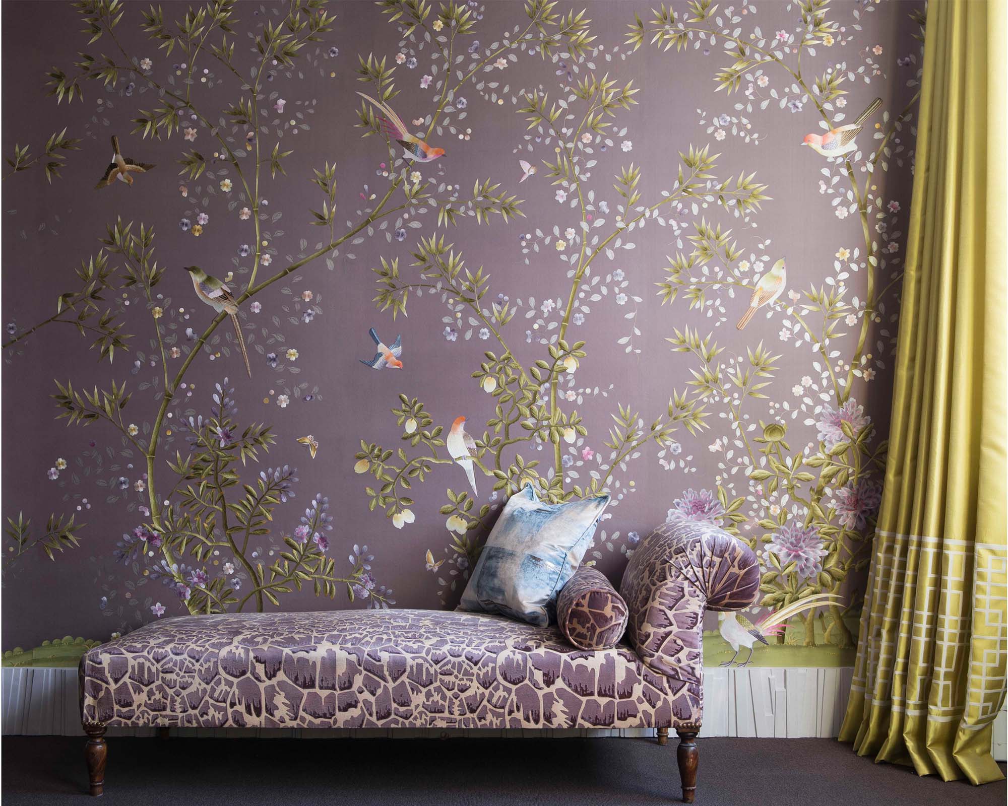 Paradiso has a strong sense of its Chinese inheritance, incorporating bamboo and a variety of oriental flora. It’s similar in density to our Nonsuch design layout but feels altogether softer and lighter, with a texture and rhythm all of its own.The scheme has a real sense of depth, an almost three-dimensional quality, which we achieve by bringing key elements of the foliage into the foreground.Paradiso works beautifully in all settings but is particularly well suited to bold colour schemes.