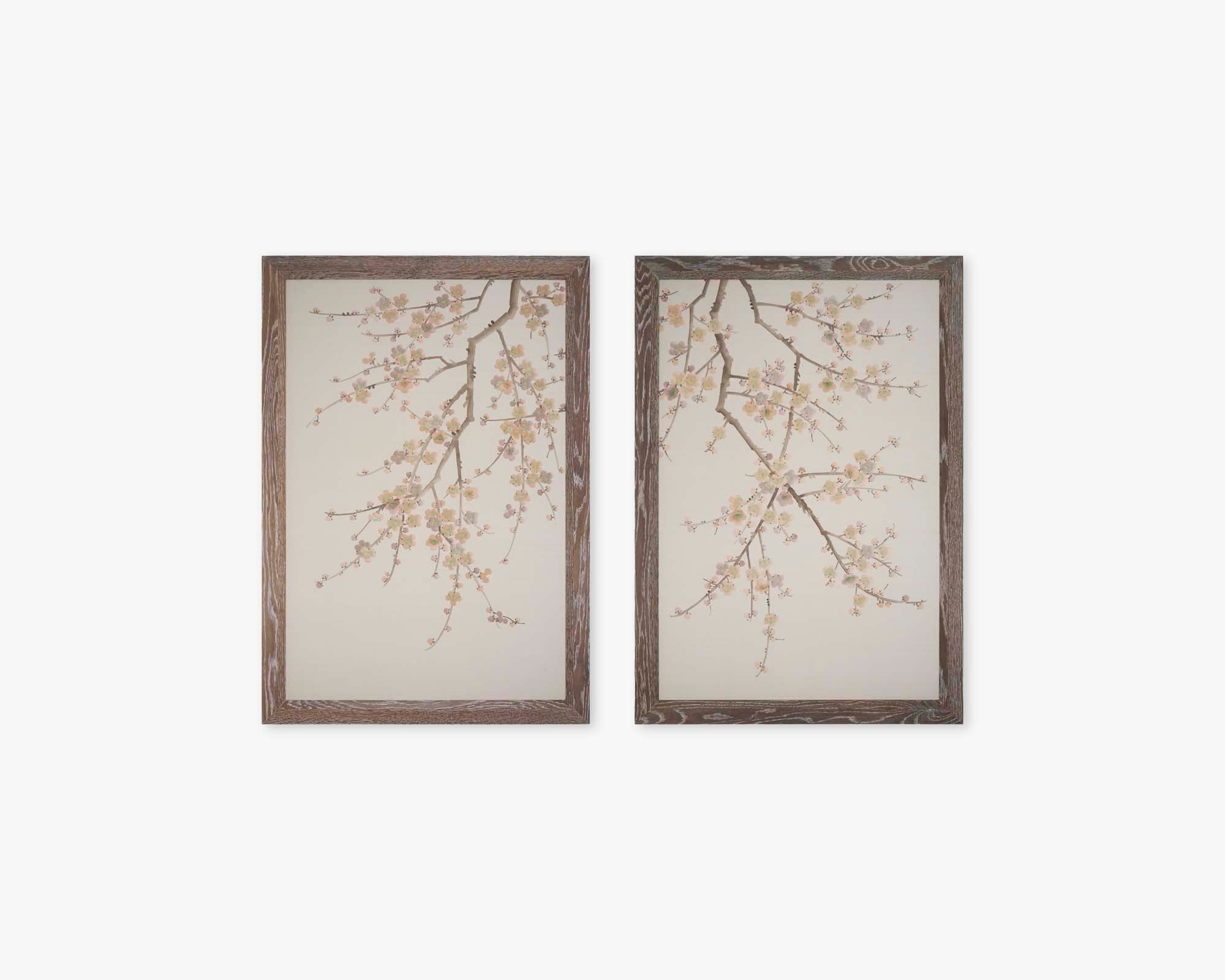 Prunus draws on the rich history of traditional plum blossom painting. A combination of our ‘unconscious’ painting style – which uses graceful, gestural brushstrokes – and the dazzling lustre of the hand-embroidered silk thread provide it with a dream-like beauty.