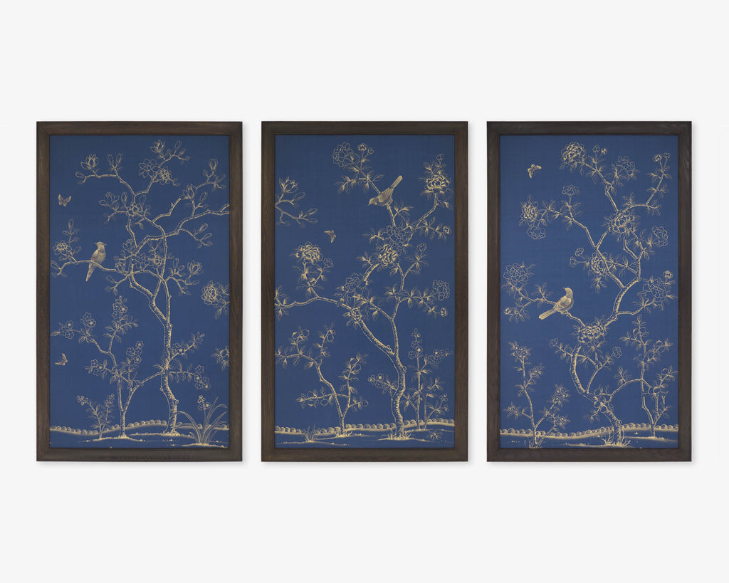 Prunus draws on the rich history of traditional plum blossom painting. A combination of our ‘unconscious’ painting style – which uses graceful, gestural brushstrokes – and the dazzling lustre of the hand-embroidered silk thread provide it with a dream-like beauty.