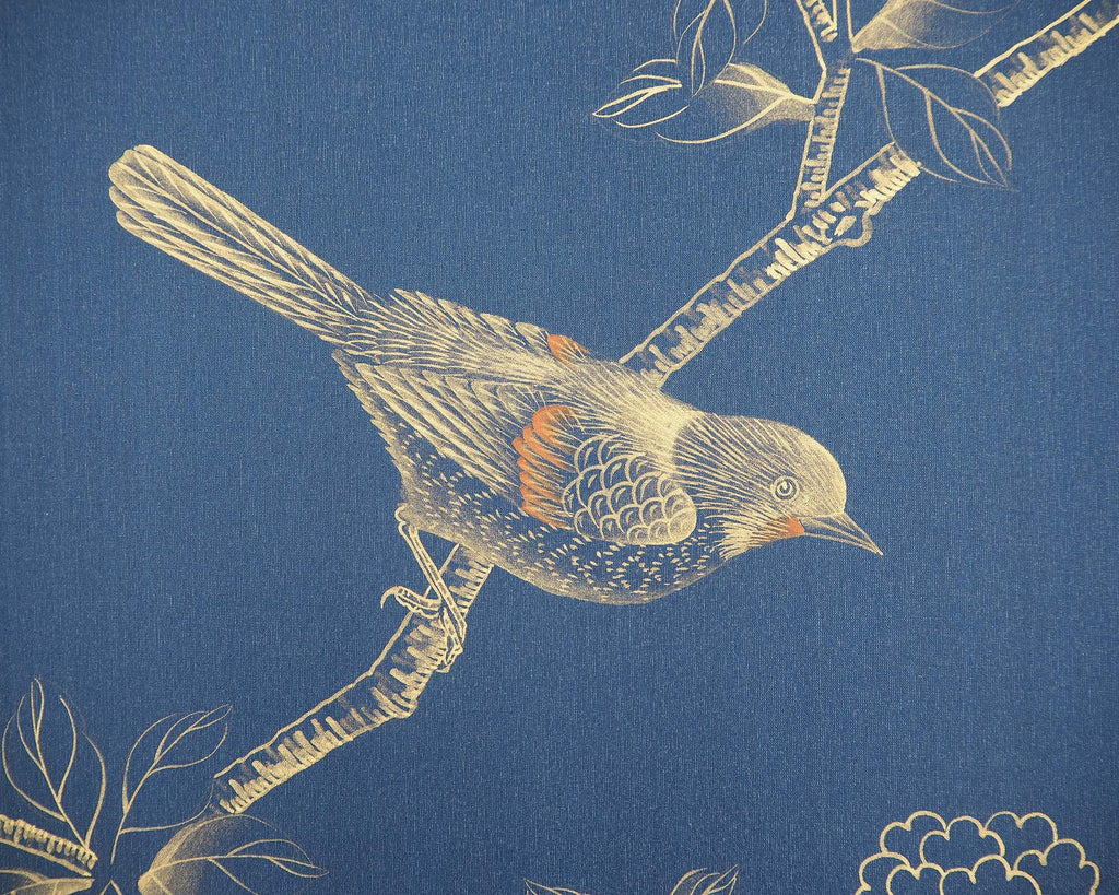 Pandora makes fine use of our Strontium Strata Silk, a background also used in our very dreamlike Biwa colourway. But here, blossoms in dusky pinks and purples lead to a more feminine scheme.