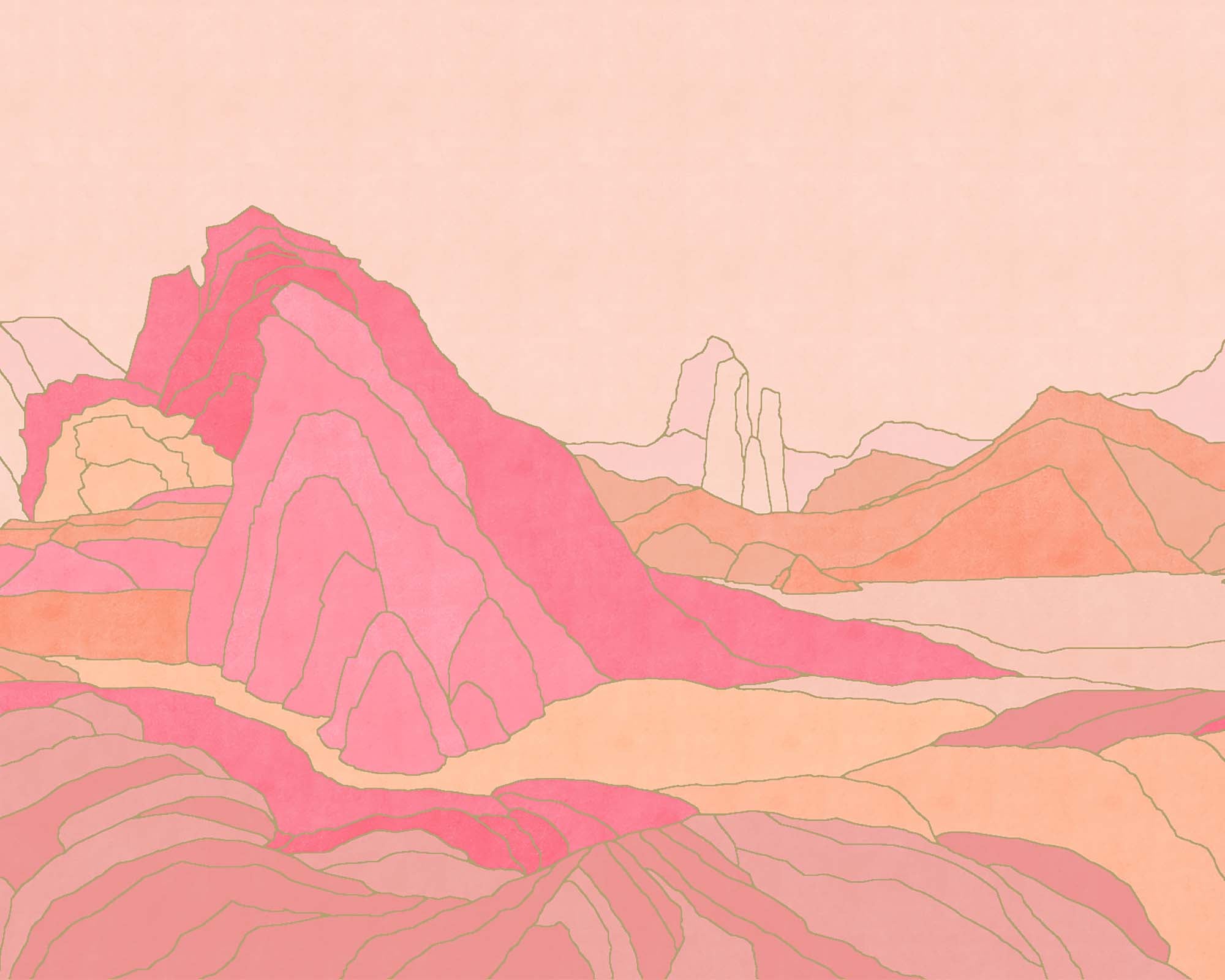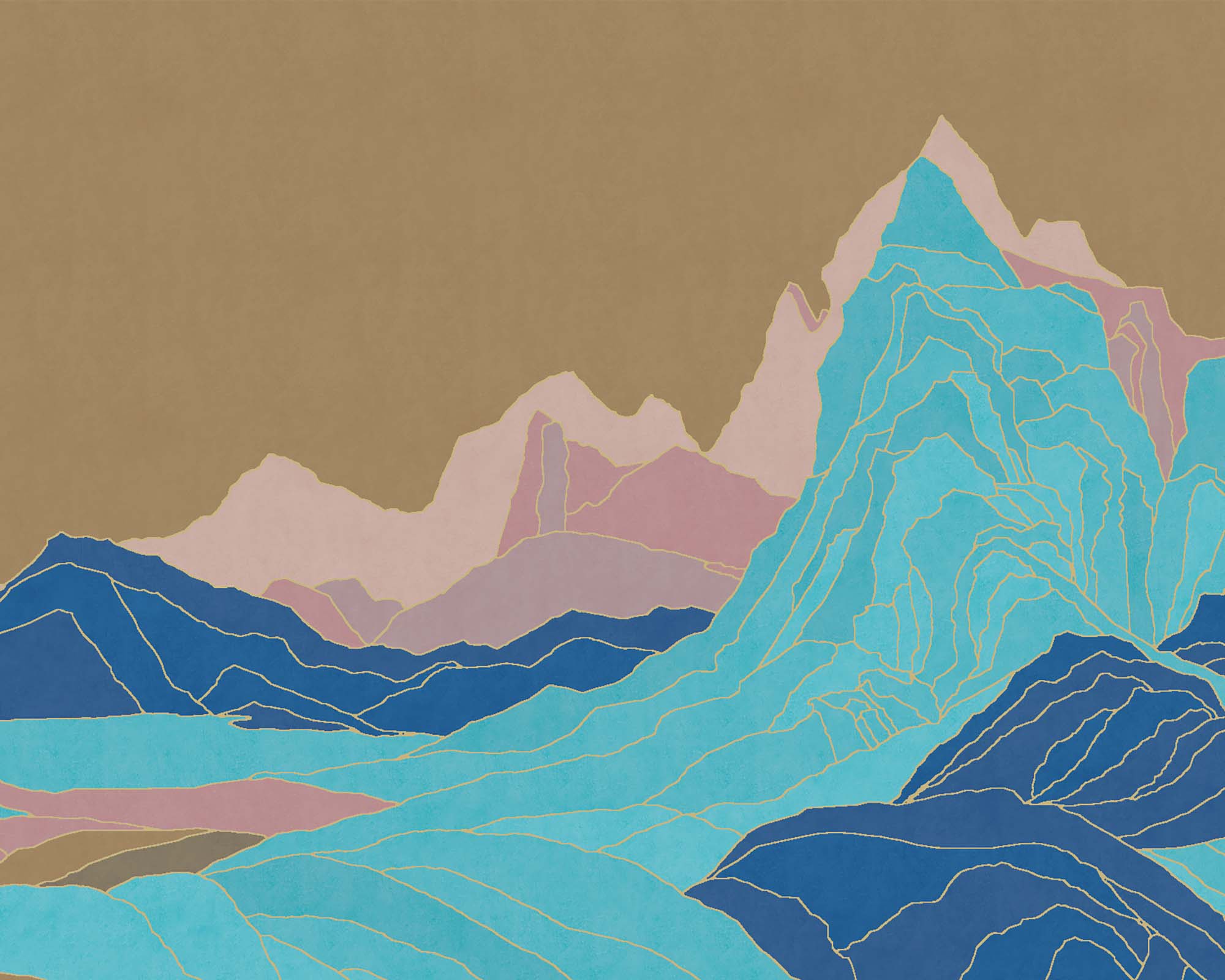 A riot of colour, El Capitan uses a combination of bold blue and bright turquoise for the foreground mountains, while dusky pinks and mauves depict the distant peaks.