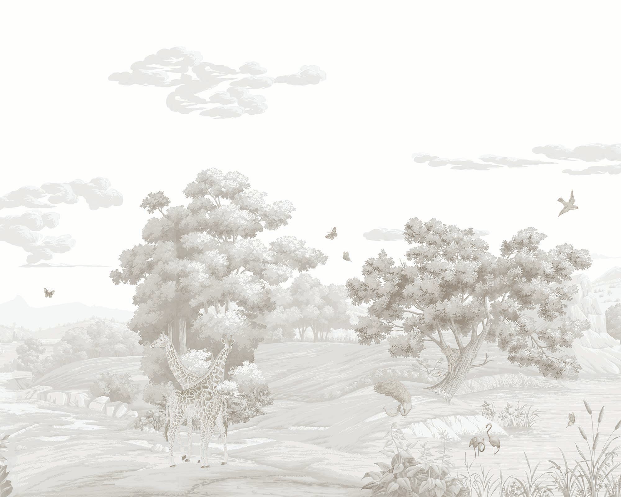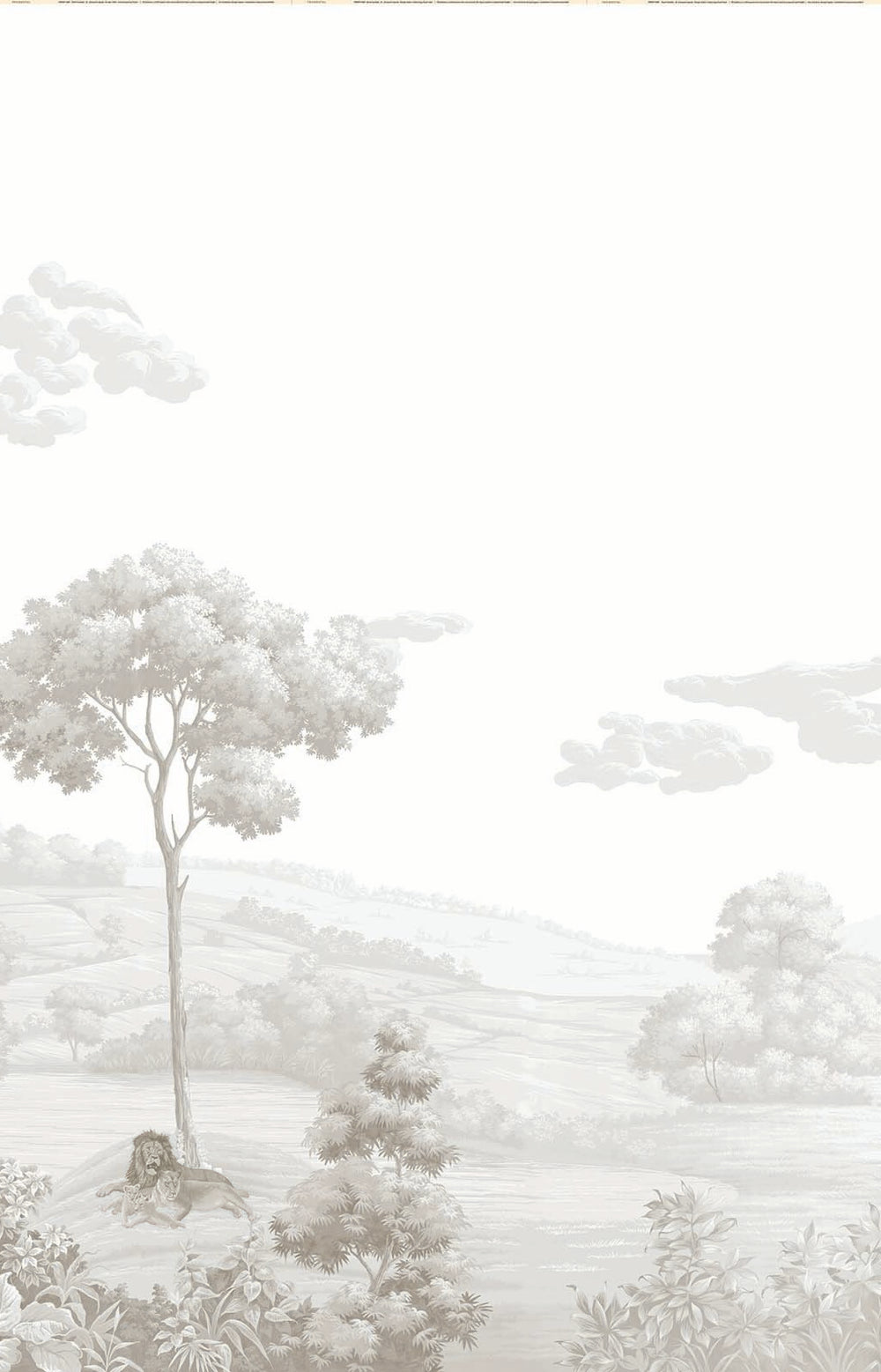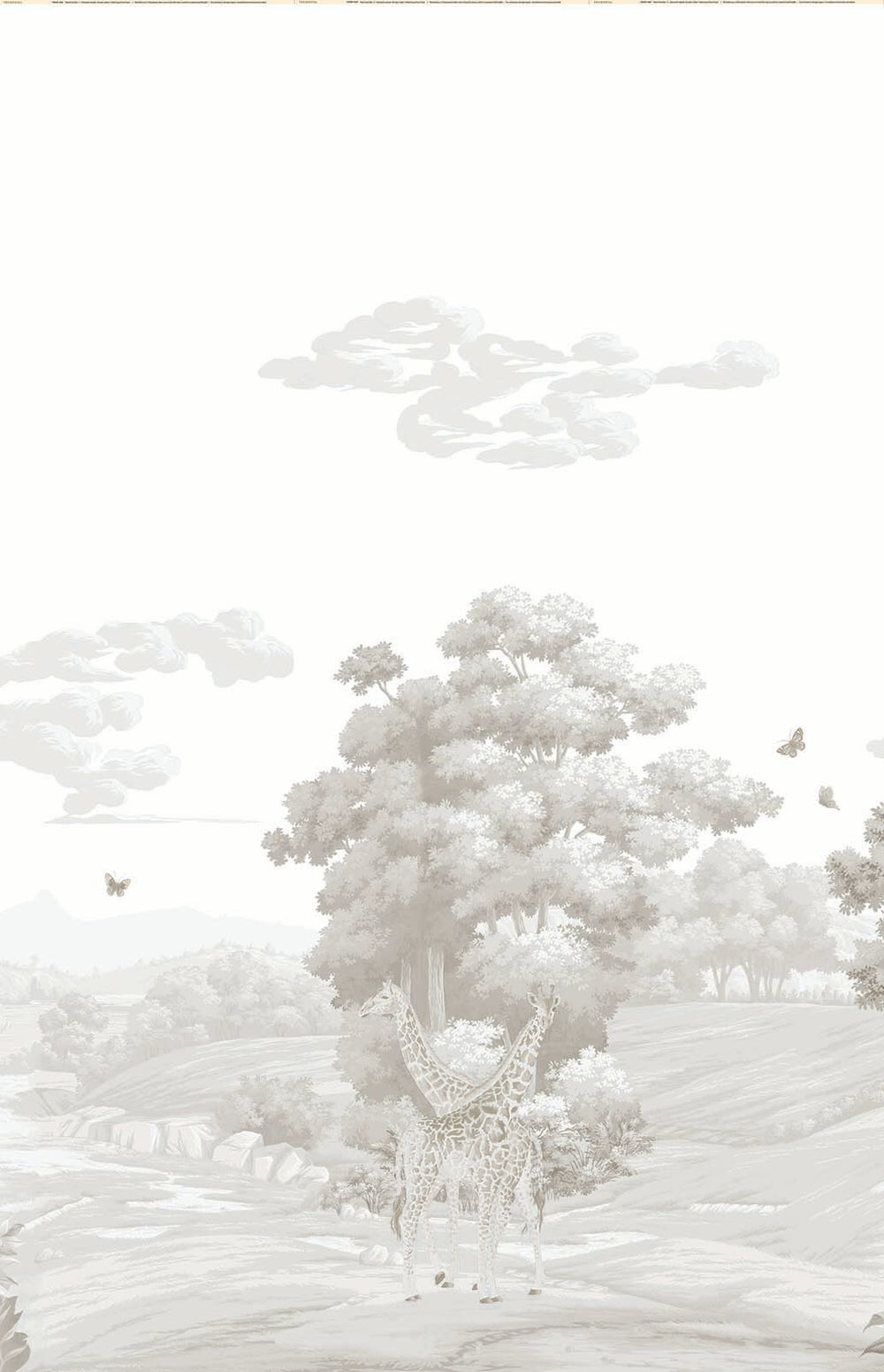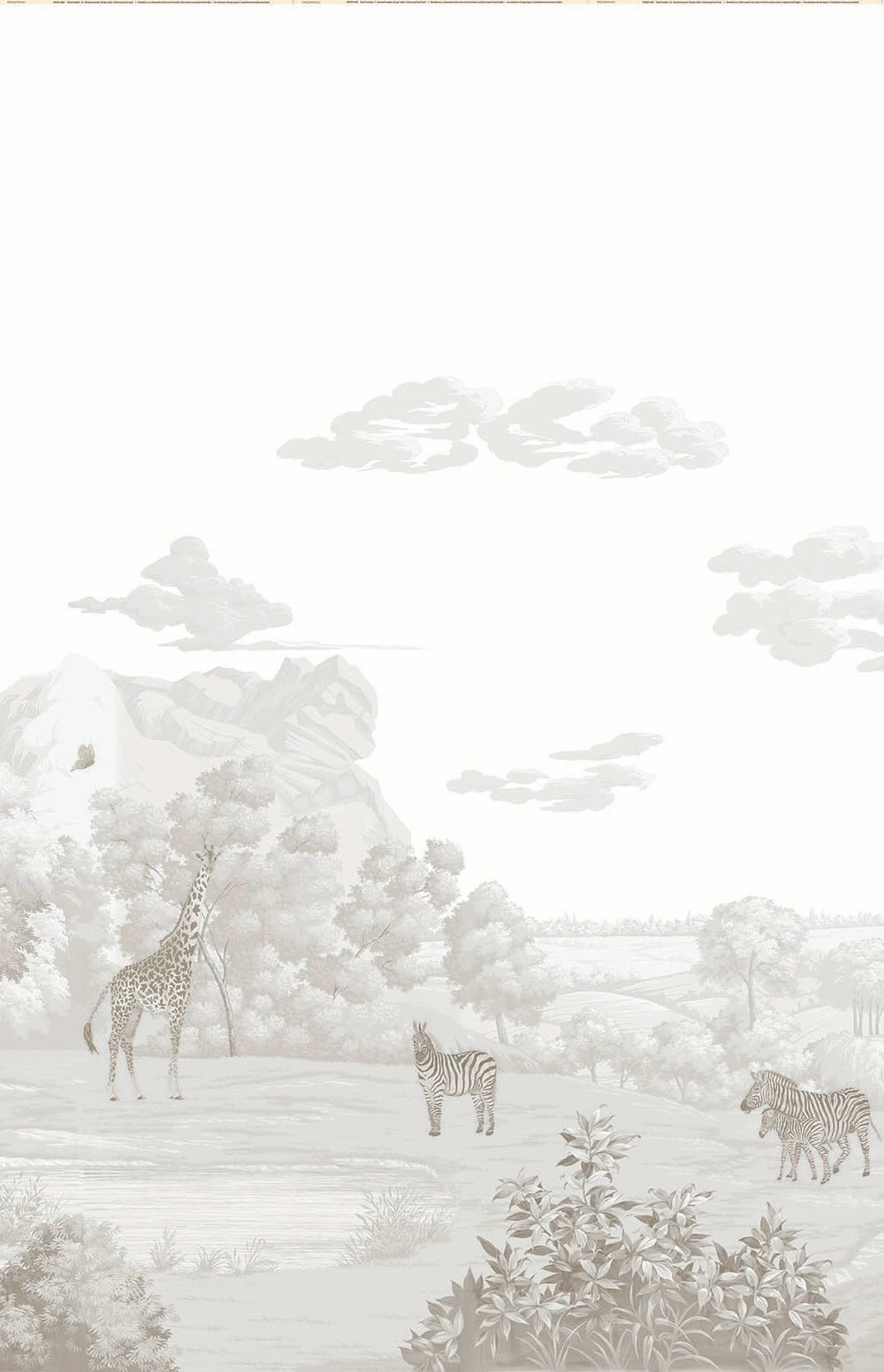 • Based on the original hand-painted scenic, Safari reimagines a classic landscape with a modern, playful twist. A pastoral setting unfolds across the design, animated by an array of exotic wildlife — from majestic peacocks and striking giraffes to families of elephants.