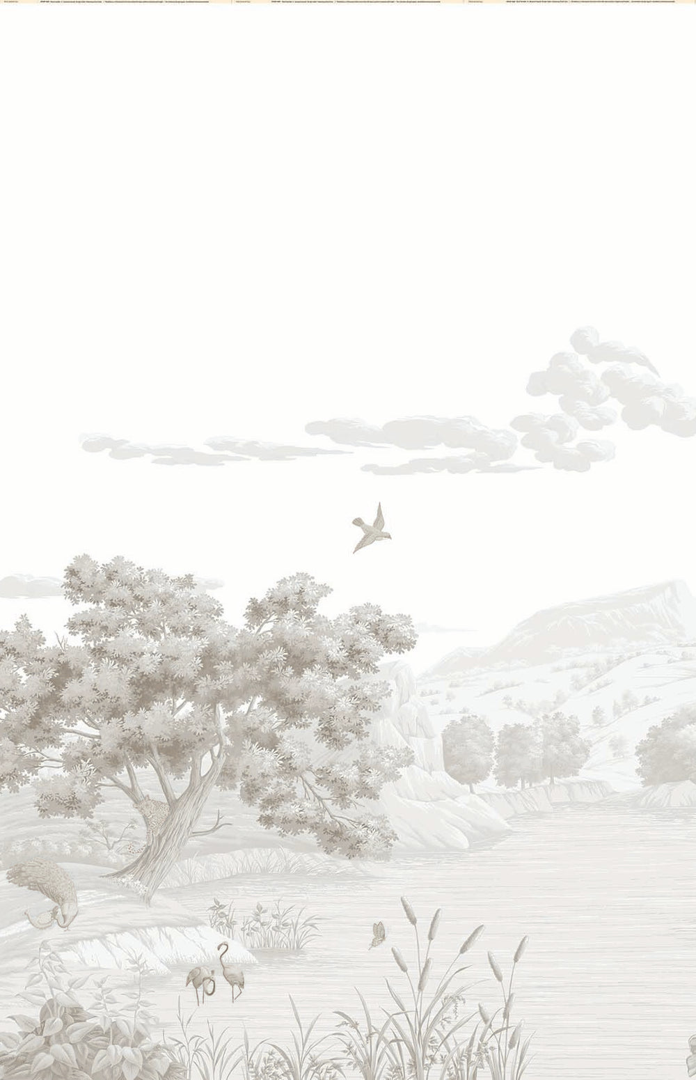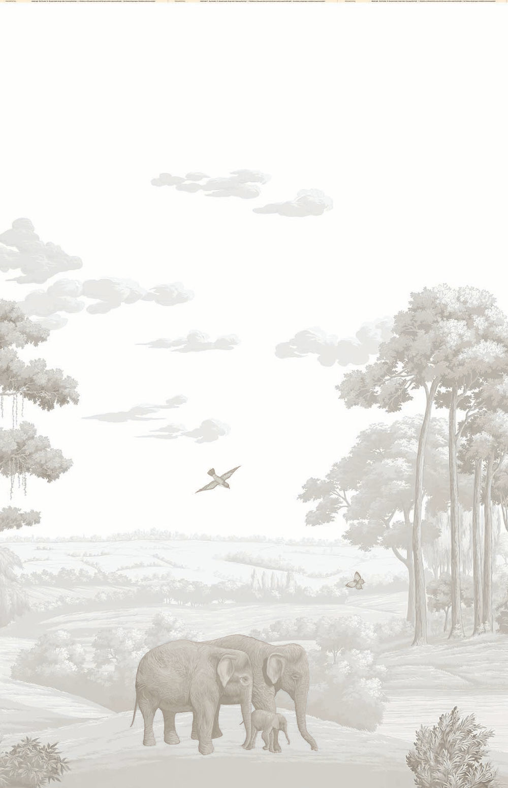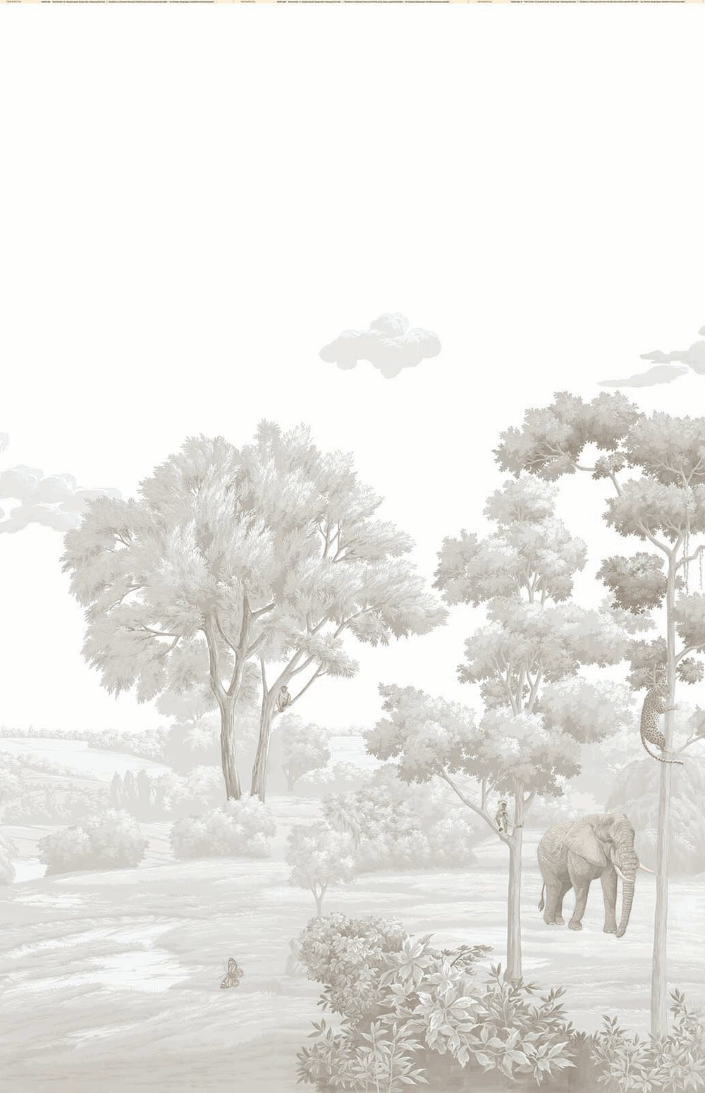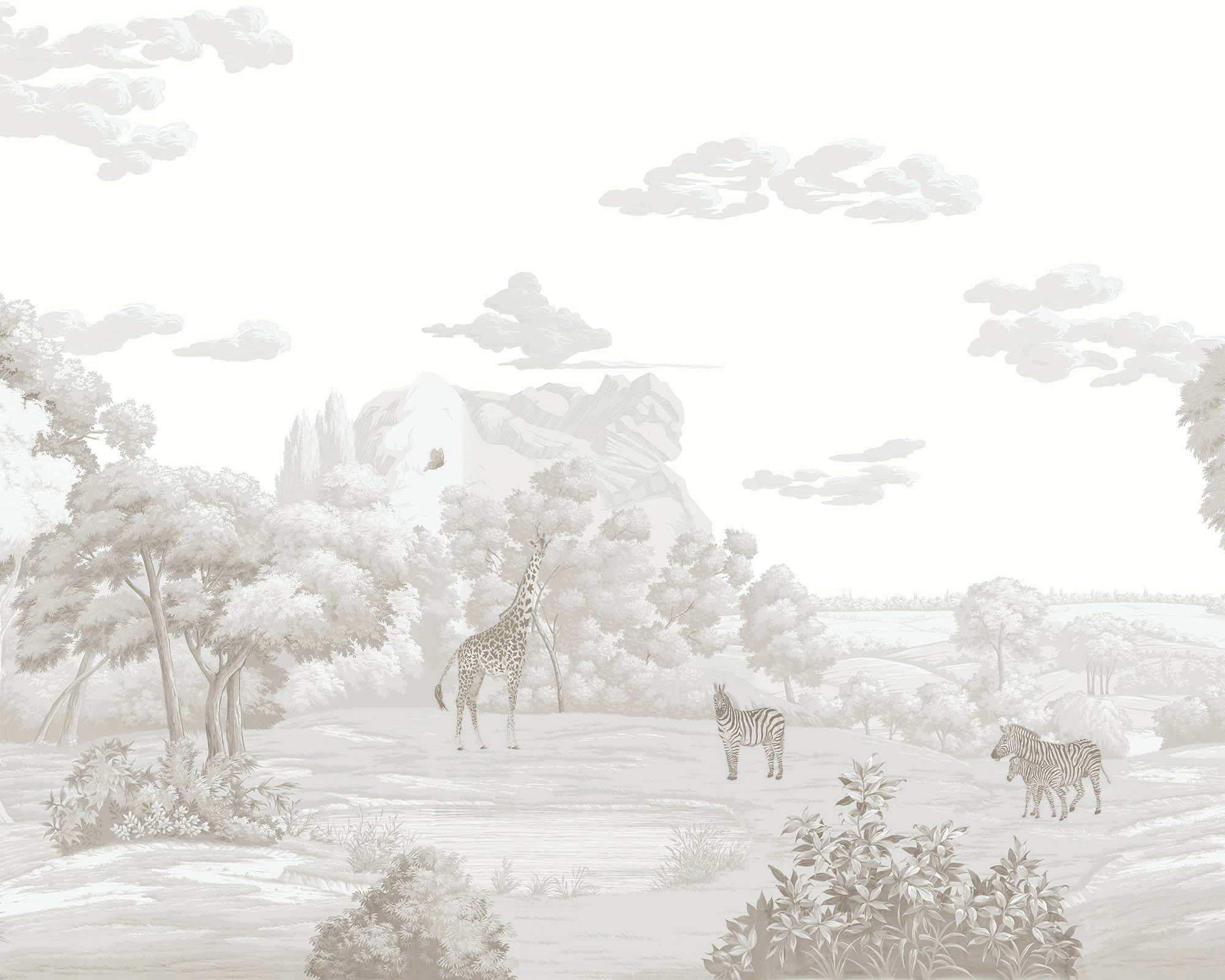• Based on the original hand-painted scenic, Safari reimagines a classic landscape with a modern, playful twist. A pastoral setting unfolds across the design, animated by an array of exotic wildlife — from majestic peacocks and striking giraffes to families of elephants.