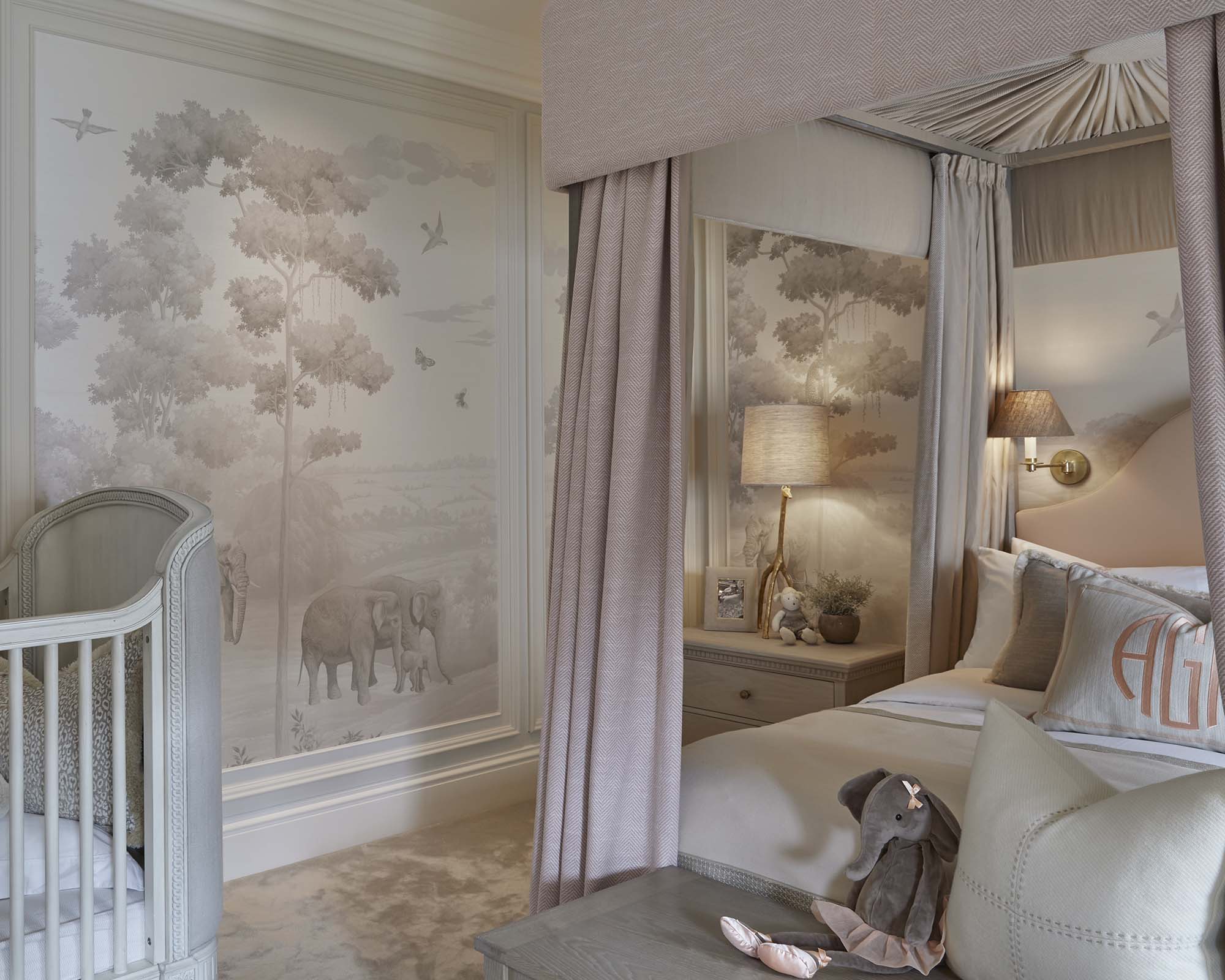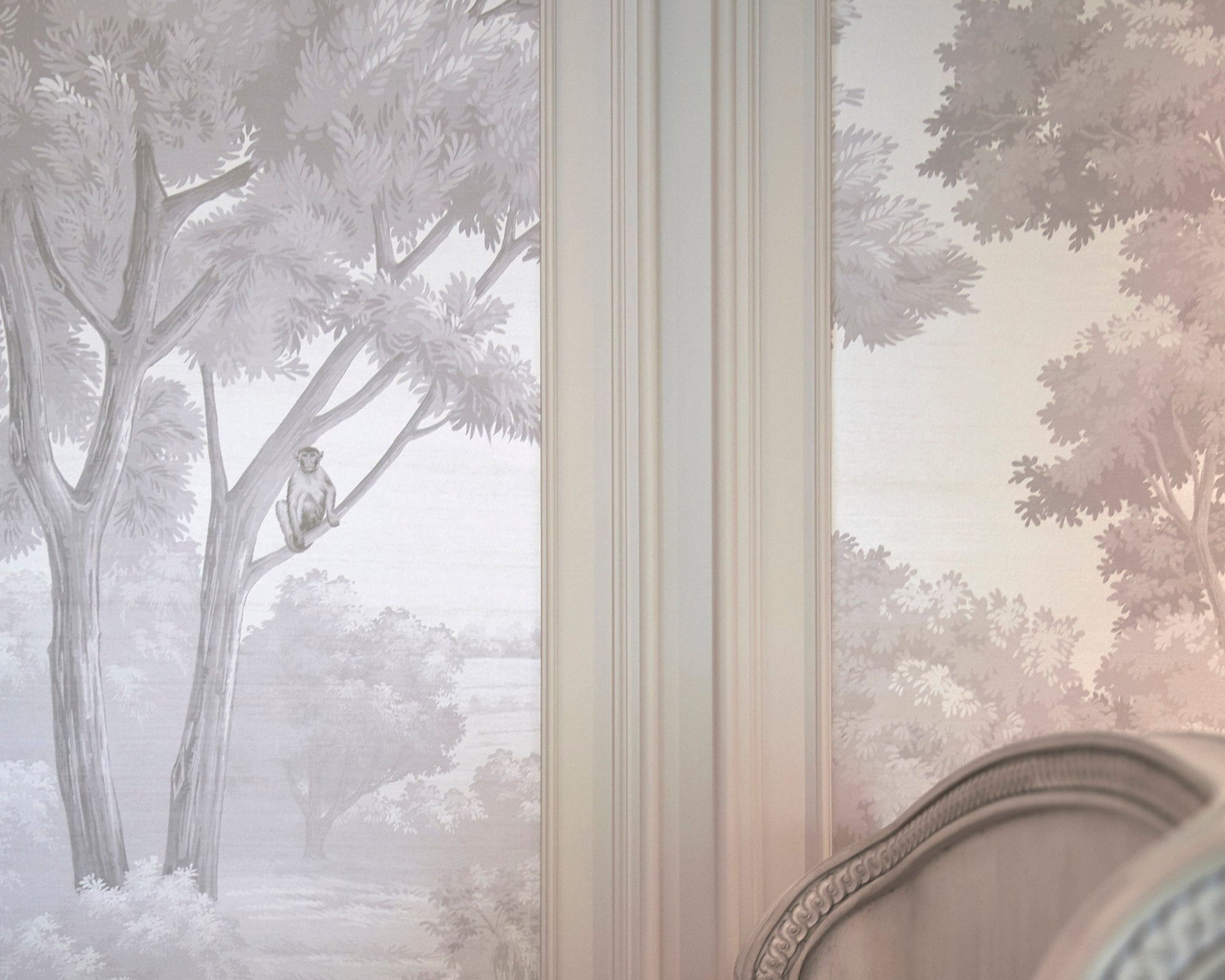 “I wanted to create a wallpaper that was both whimsical and stimulating for a toddler and would also transition into childhood and beyond. I'd happily have this wallpaper in my own room. At first glance it is very sophisticated and restful – the animals are fun, playful details.” – Sophie Paterson