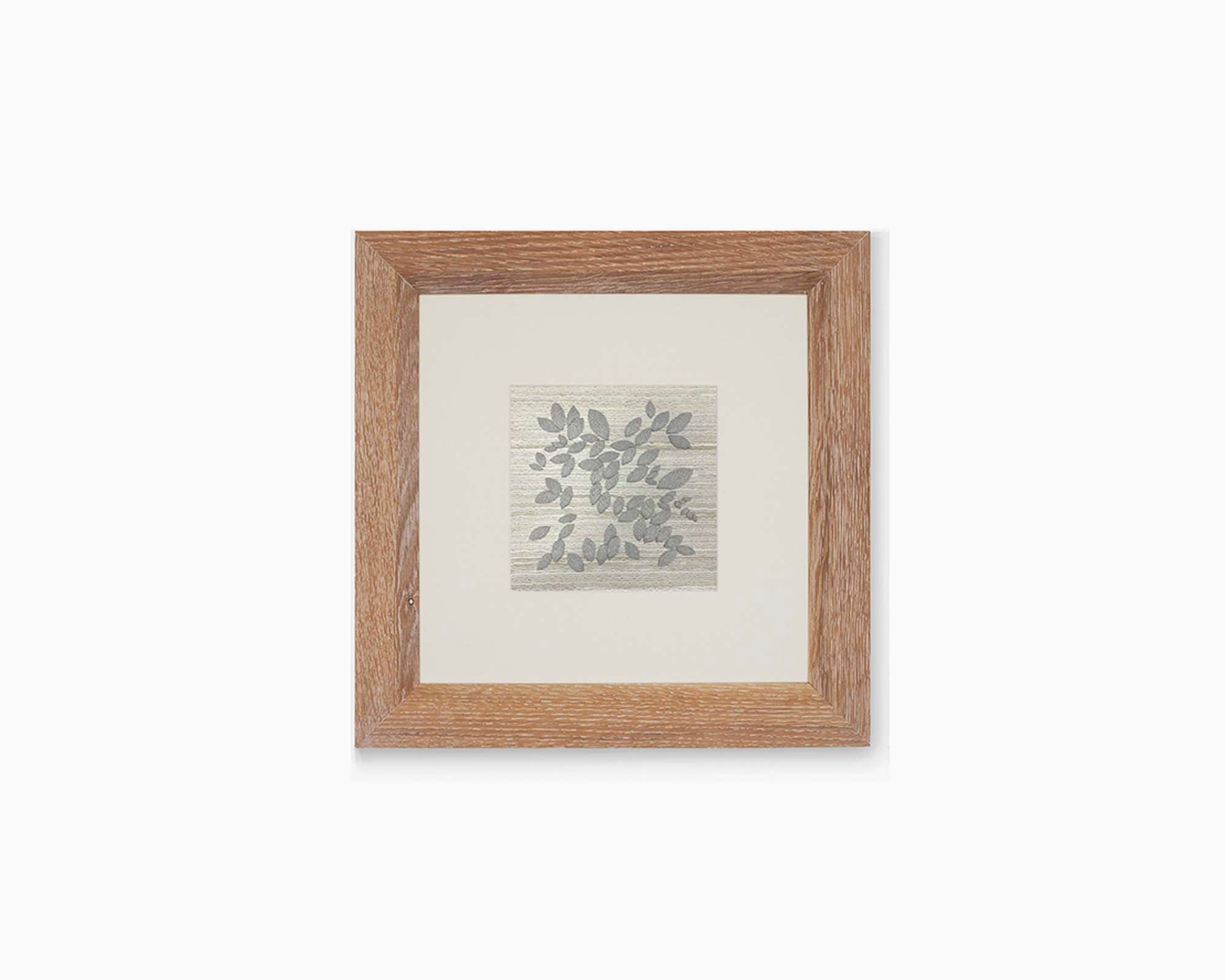 Each piece is hand-embroidered on raw silk or linen and presented in a natural oak frame. Our American Oak is treated with tung oil, lime, and beeswax to enhance the organic texture of the artwork while preserving its raw integrity.